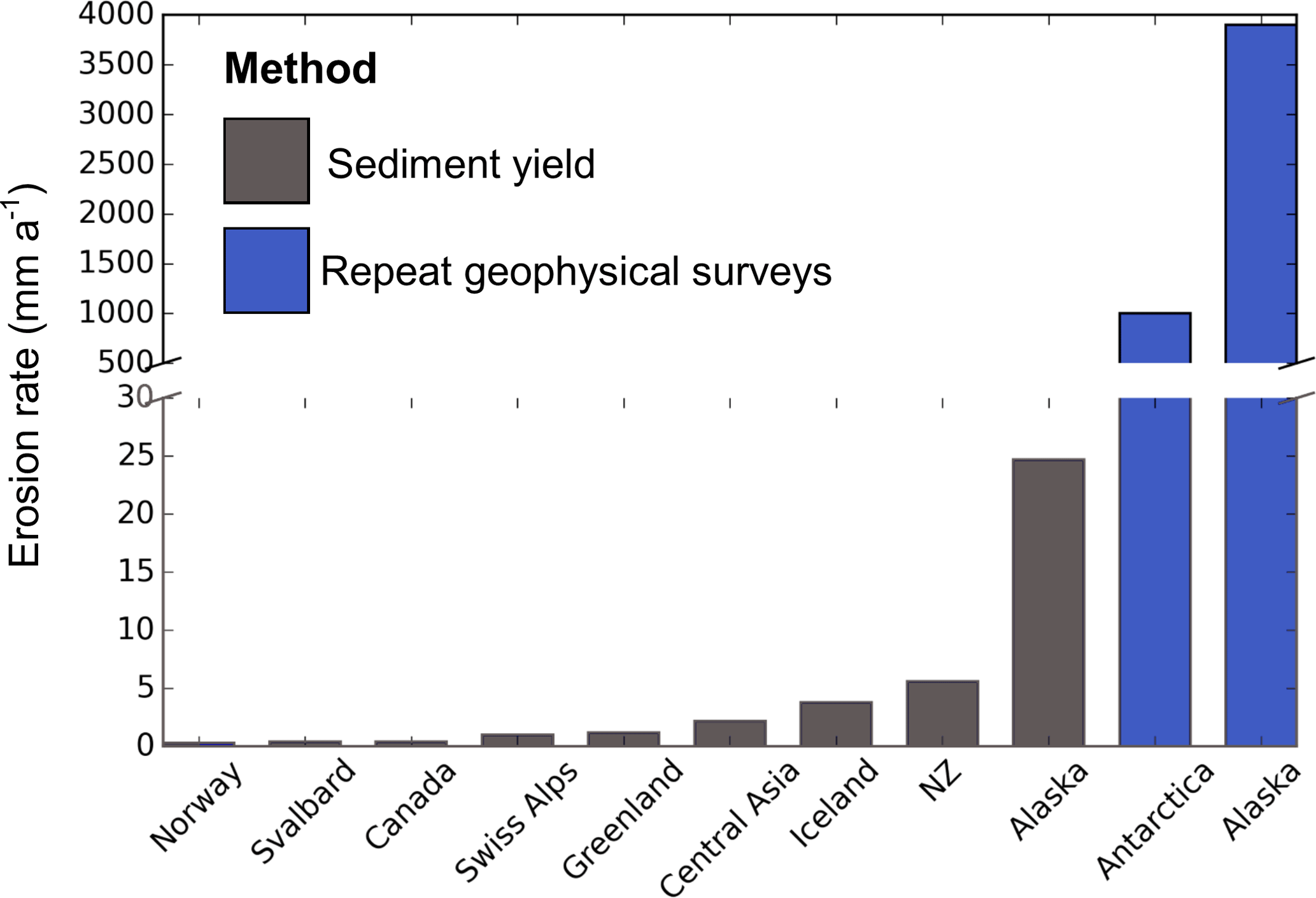 Observed latitudinal variations in erosion as a function of glacier dynamics