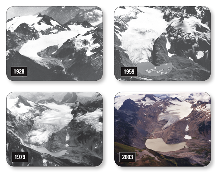 1850년경에 끝난 소빙하기 이후, 지구 곳곳의 빙하는 상당히 후퇴했다. 1950년에서 1985년 사이에 약간의 냉각으로 많은 고산 빙하가 전진했지만, 1985년 이후 빙하 후퇴와 질량 손실은 더 커지고 점점 더 널리 퍼지고 있다.[22][23][24]