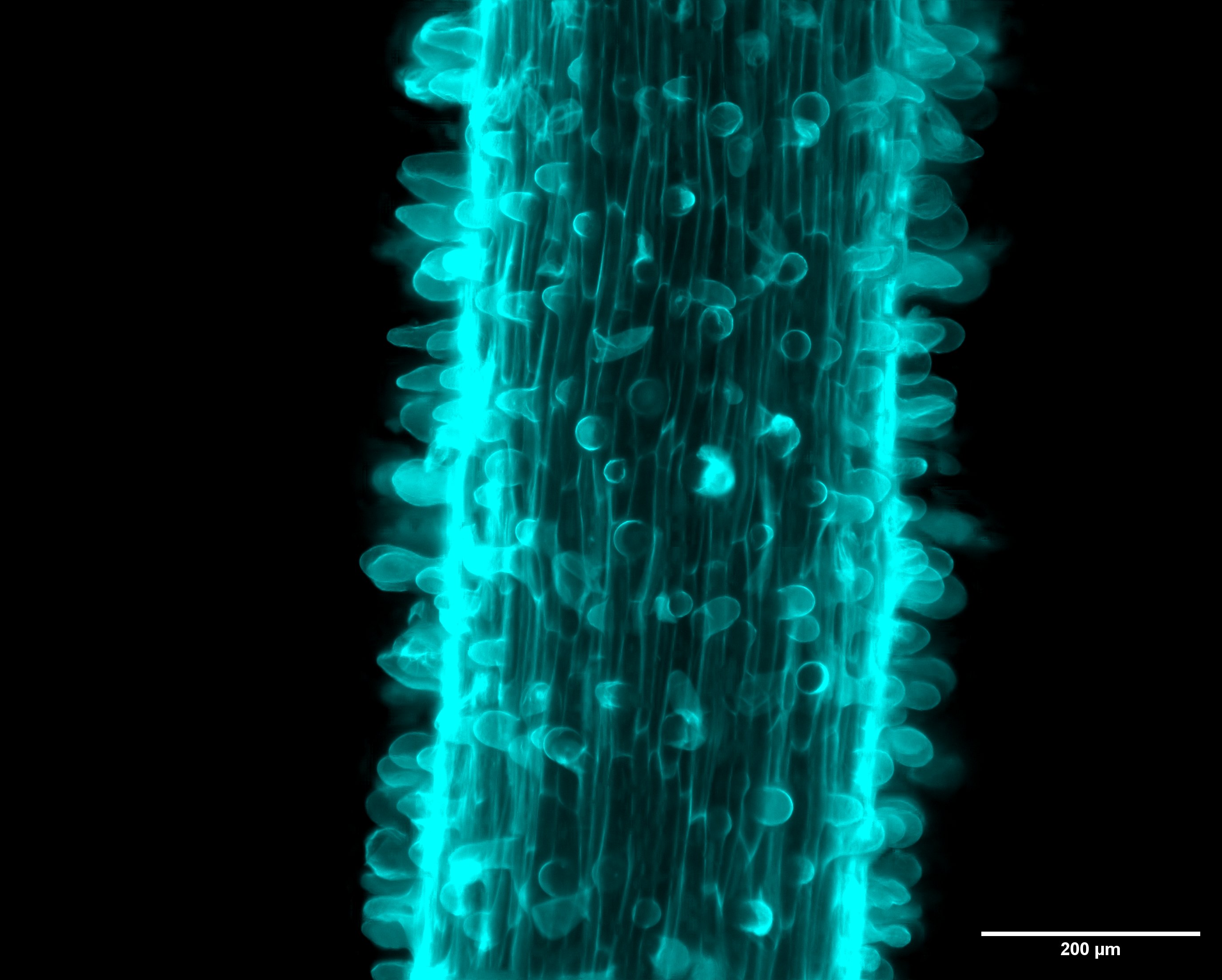 | 역할 | 표면적 증가: 뿌리 표면적을 크게 증가시켜 물과 영양분 흡수를 용이하게 한다. 토양 접촉 증대: 토양 입자 사이의 작은 틈새까지 도달하여 흡수 효율을 높인다. |