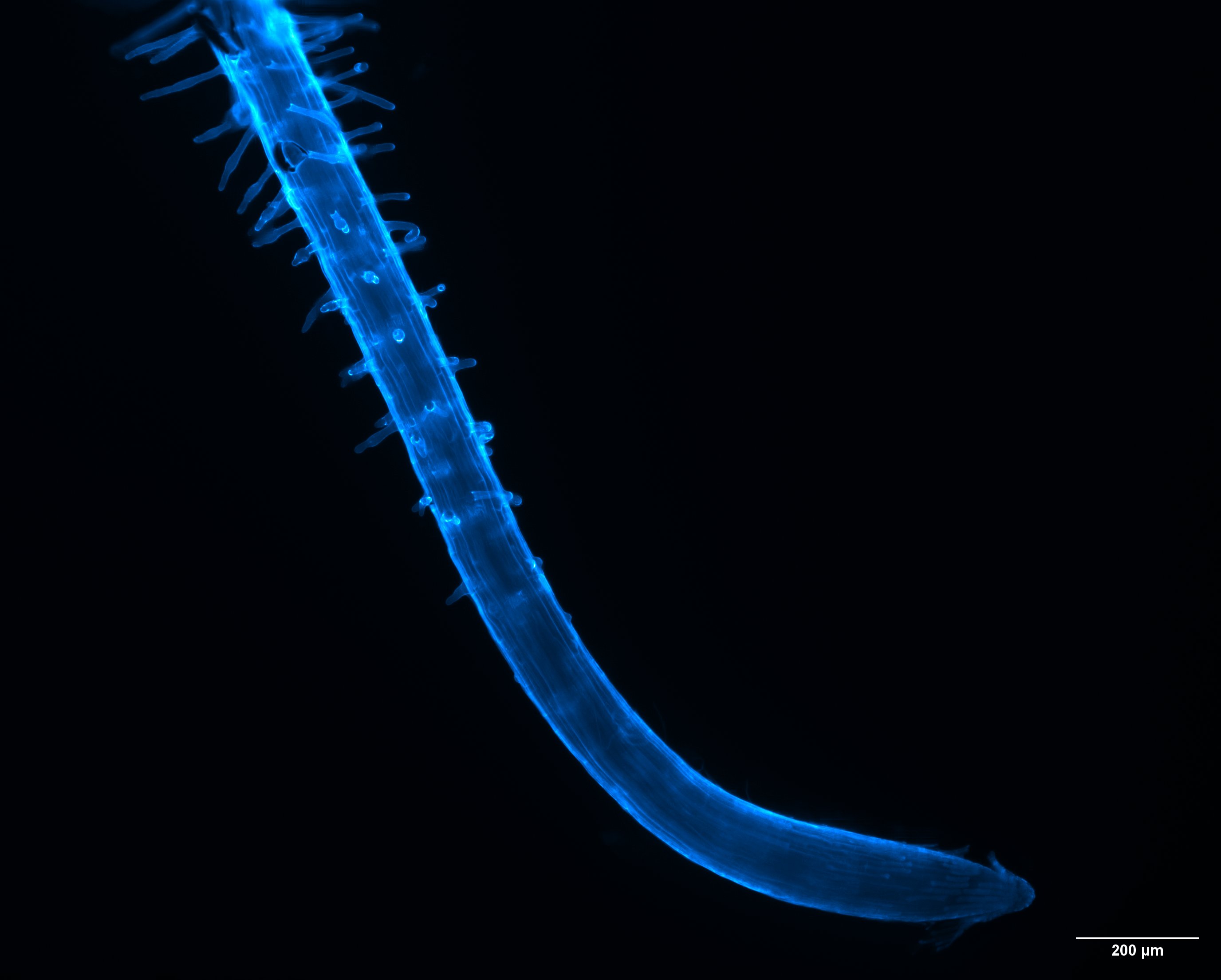 더불어 뿌리털은 다른 생물과의 상호작용에서도 중요한 역할을 한다. 콩과 식물 등에서는 질소 고정 세균과 공생하여 뿌리혹을 형성하는 시작점이 되며,[3][27][33] 균근균과 같은 토양 미생물과 공생 관계를 맺어 식물의 영양분 획득을 돕는다.[10]