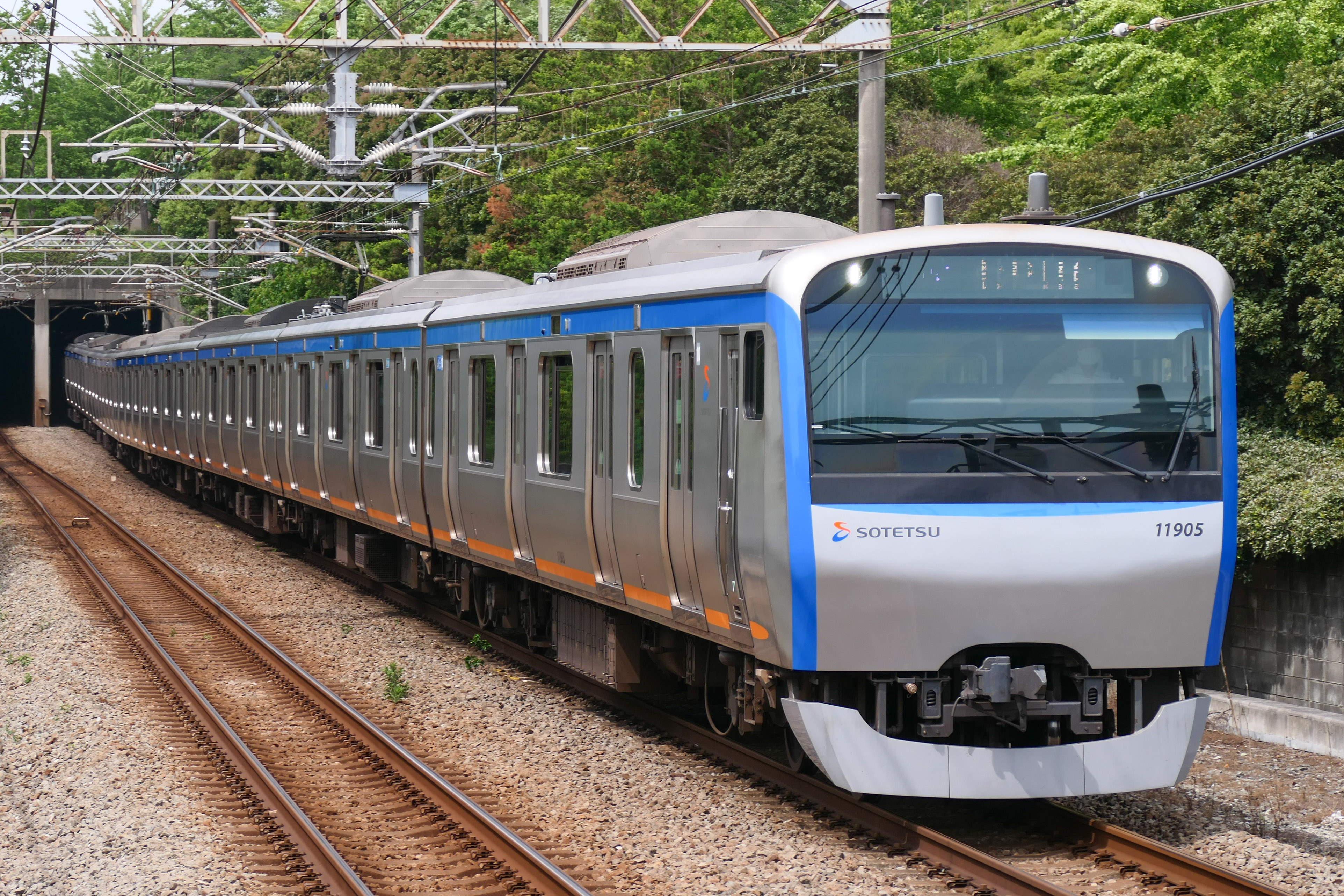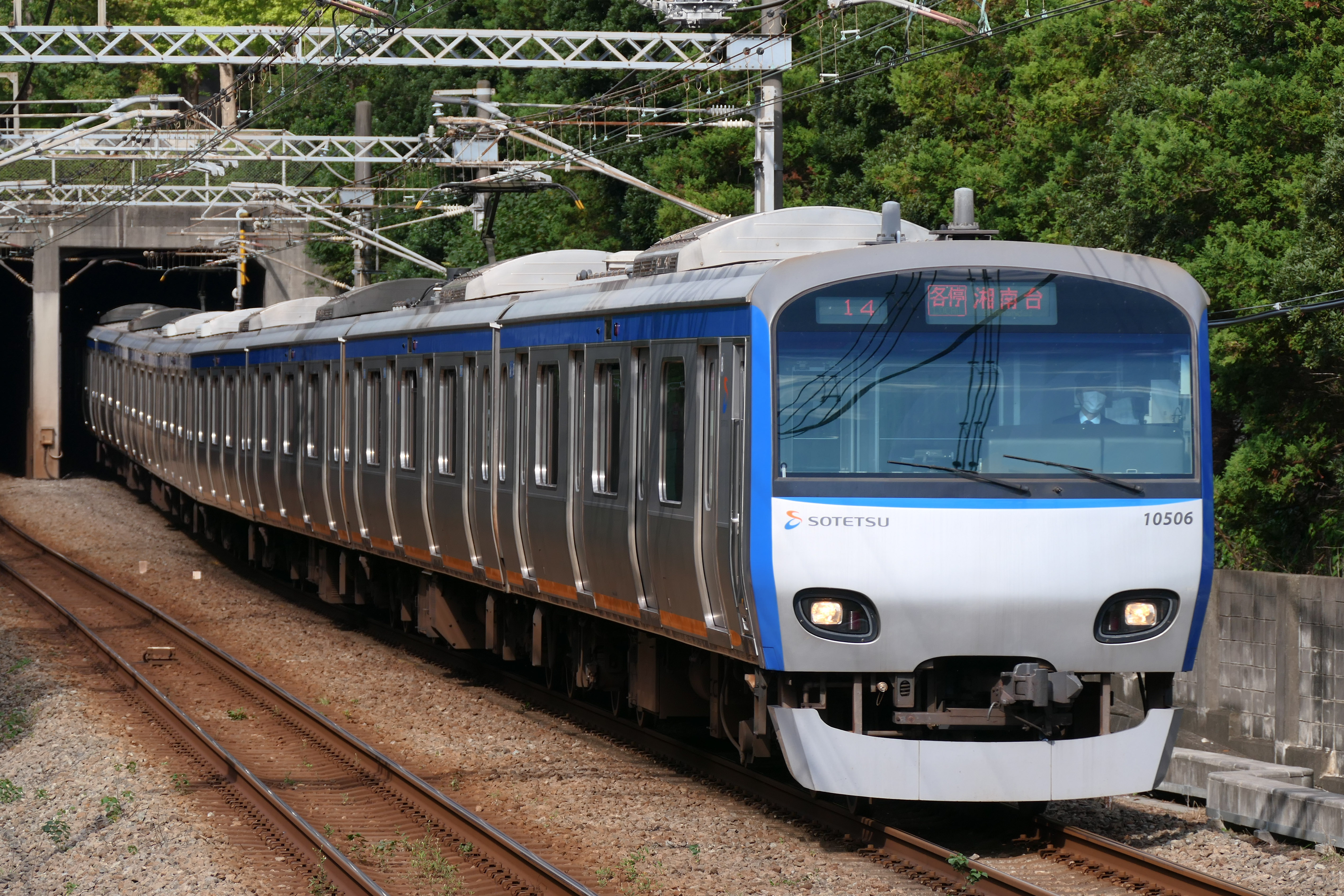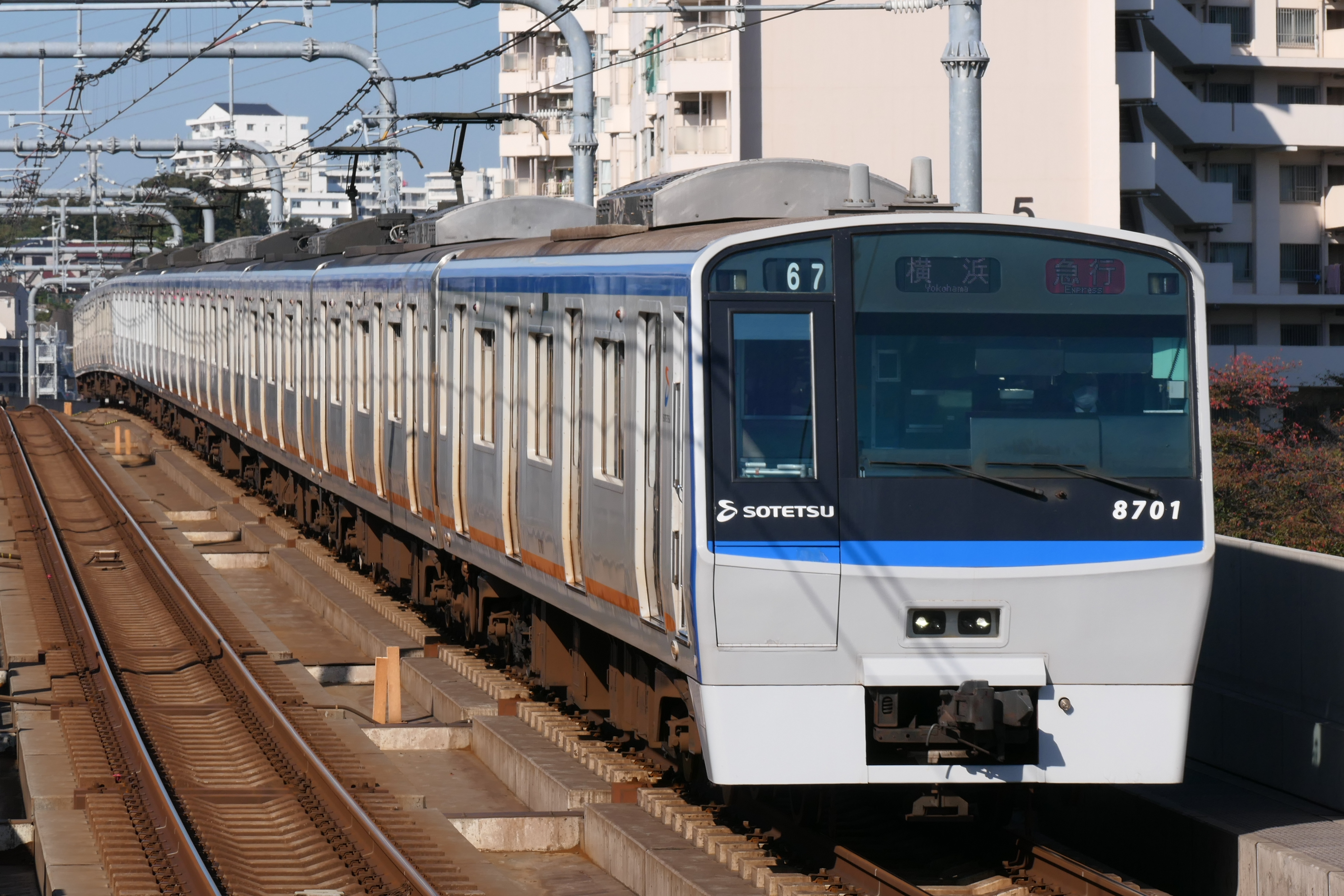 - 도쿄도 교통국(도에이 지하철): 도큐 신요코하마선·메구로선을 경유하여 미타선과 직통 운행한다.[164] 소테쓰에서는 21000계가 직통 운행하지만, 당분간은 소테쓰에서 출발하는 편측 직통 운행으로 대응한다. 도에이 지하철은 6500형이 장래 직통 운행에 대응할 가능성이 있으며, 준비 공사도 실시하고 있다. 대응 공사가 완료되면 상호 직통 운행으로 전환할 계획이다.[165] 소테쓰 21000계 제1편성은 도큐에 대여되어 시험을 거친 후, 도쿄도 교통국에 재대여되어 미타선 진입 시험을 실시했다.[166]