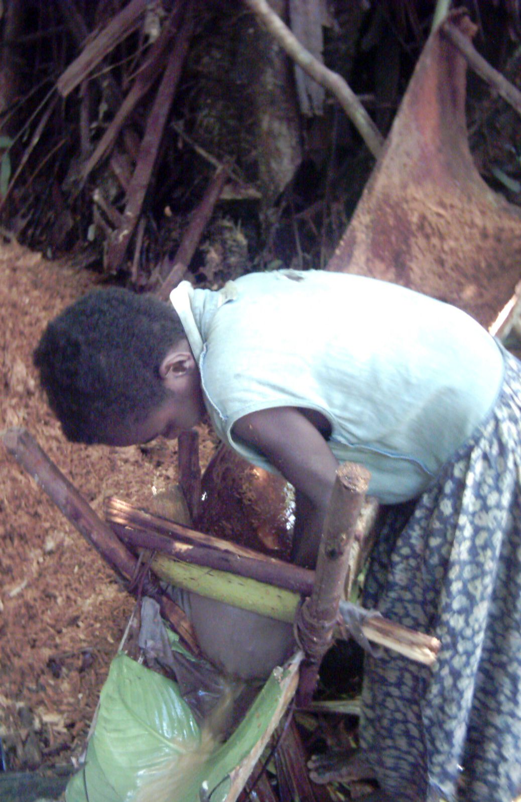 사고 야자가 쓰러진 후 줄기 안에 야자왕바구미(''Rhynchophorus ferrugineus'')의 유충이 서식하는데, 이를 채집하여 날것으로 또는 가열하여 먹기도 한다. 야자왕바구미 유충은 동물성 단백질을 섭취할 수 있는 귀중한 식량이다. 전분을 채취하고 남은 나무 부스러기는 연료나 퇴비로 사용된다.[18]