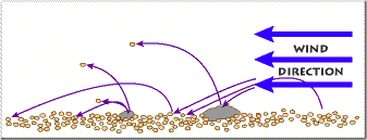 모래는 바람에 의해 밀리거나(크리프), 튀어 오르면서(도약) 이동한다. 모래가 모래에 부딪히면 달라붙을 가능성이 더 높고, 모래가 더 응집력 있는 표면에 부딪히면 튀어 오를 가능성이 더 높다. 이러한 피드백 루프는 모래가 사구로 축적되는 데 도움을 준다.[15]