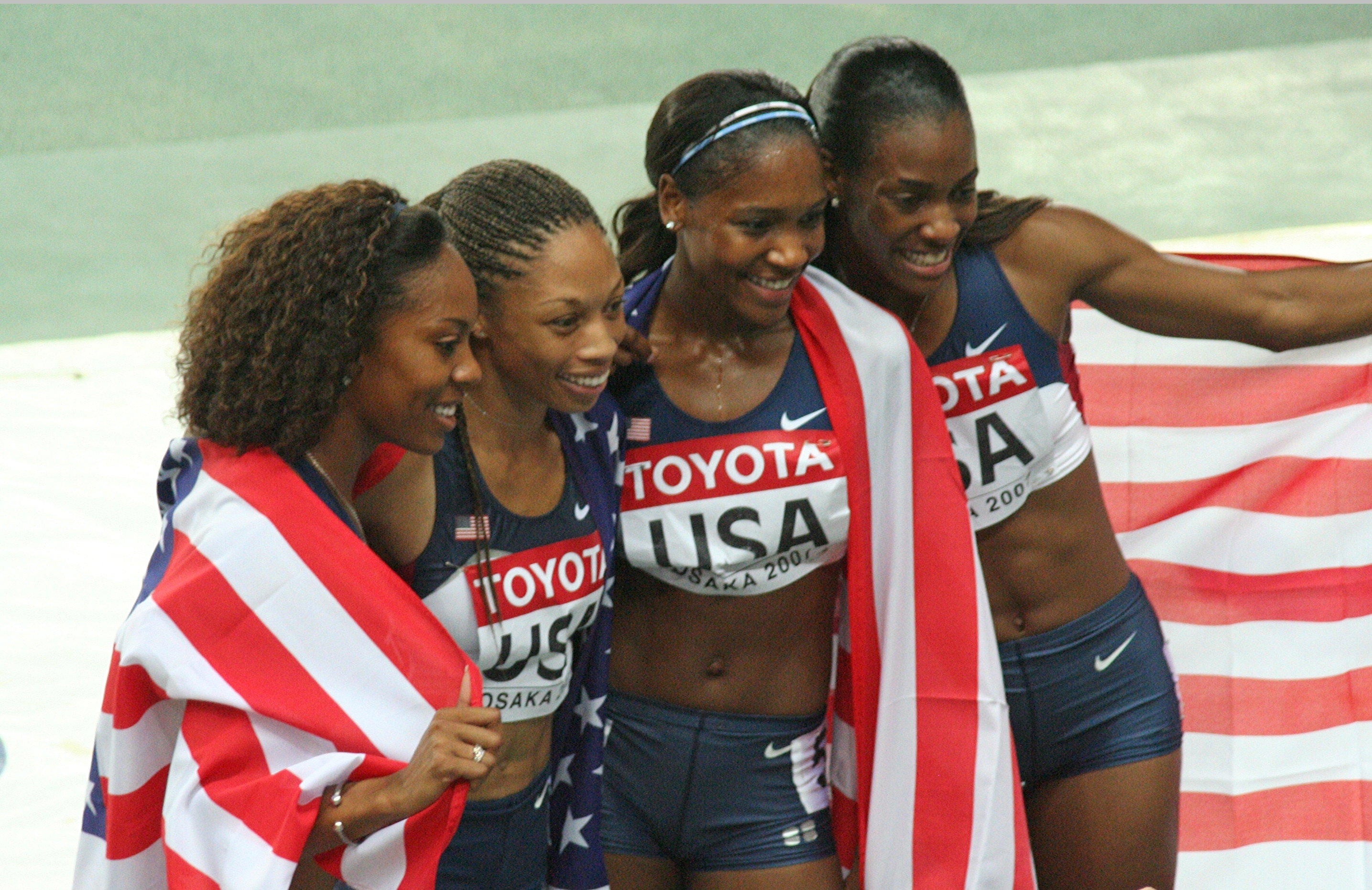 사냐 리처즈로스는 2004년 아테네 올림픽 여자 400m 결승에서 50.19초로 6위를 기록했다.[86] 하지만 4 × 400m 릴레이에서는 3분 19초 01의 기록으로 금메달을 획득했다.[86] 2008년 베이징 올림픽에서는 400m에서 49.93초로 동메달을 획득했고,[86] 4 × 400m 릴레이에서는 3분 18초 54로 금메달을 차지했다.[86] 2012년 런던 올림픽 400m 결승에서는 49.55초로 금메달을 획득하며,[86] 400m 릴레이에서도 3분 16초 87로 금메달을 추가하며 올림픽 4관왕에 올랐다.[86]