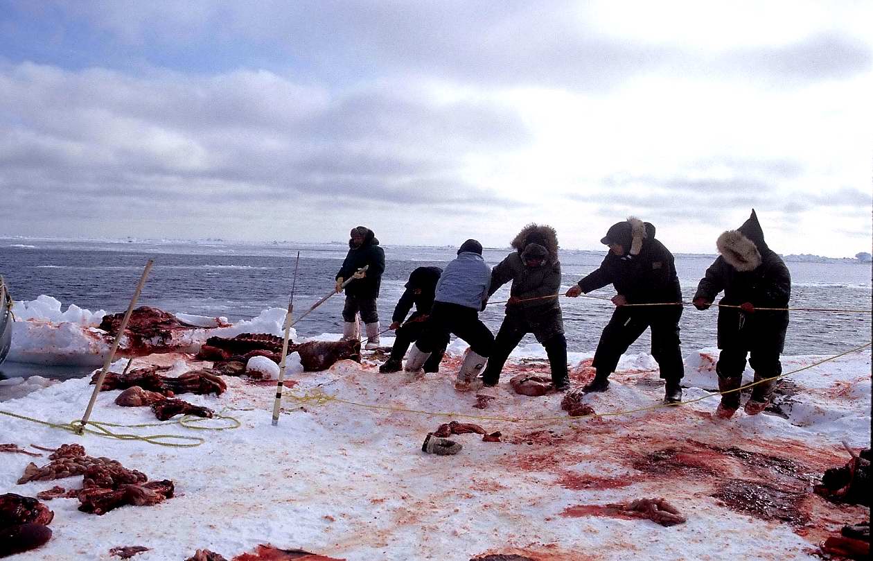 사냥은 특히 목축에 적합하지 않거나 농업에 적합하지 않은 변두리 기후에서 여전히 필수적이다.[41] 예를 들어, 북극의 이누이트는 옷을 만들기 위해 동물을 덫으로 잡고 사냥하며, 해양 포유류의 가죽을 사용하여 카약, 의류 및 신발을 만든다.
