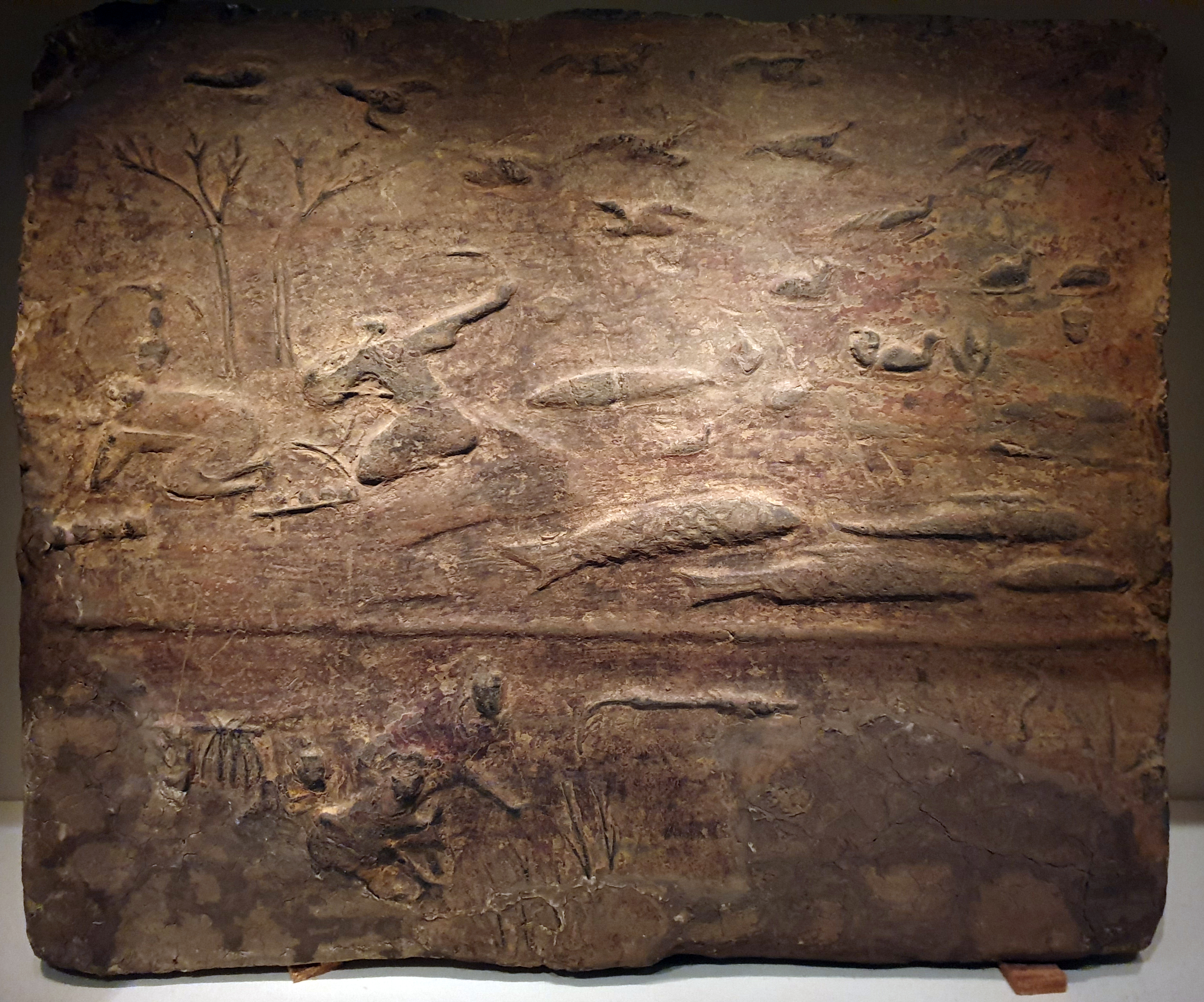 고대 부조에서는 특히 메소포타미아에서 조각가들이 왕을 사자와 같은 대형 동물 사냥꾼으로 묘사하며 종종 전차에서 사냥하는 모습으로 묘사하는데, 이는 왕족이 사냥에 참여하는 초창기 사례로, 상징적이고 군사적인 의미를 담고 있다.[42] "왕들의 스포츠"로 여겨졌다.[43] 고대 사회에서 사냥의 문화적, 심리적 중요성은 뿔 달린 신 케르눈노스와 고전 고대의 달의 여신인 그리스의 아르테미스 또는 로마의 디아나와 같은 신들에 의해 나타난다. 종종 금기가 사냥과 관련되며, 희생 동물과 신과의 신화적 연관성은 사찰 주변의 자연 보호 구역과 같은 사냥 제한에 반영될 수 있다. 예를 들어, 에우리피데스의 아르테미스와 악타이온 이야기는 사냥감에 대한 무례함이나 뻔뻔한 자랑에 대한 경고로 볼 수 있다.