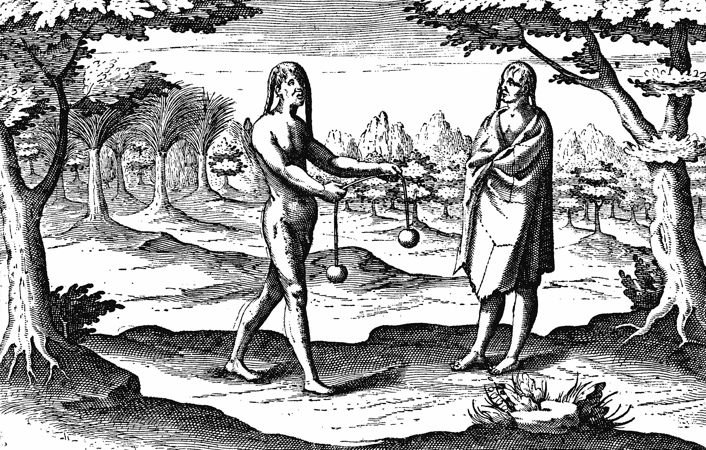 사냥돌은 남아메리카 원주민들이 오랫동안 사용해 온 전통적인 사냥 도구이다. 1603년 헨드릭 오트센의 기록에는 라플라타 강의 아메리카 원주민들이 사냥돌을 사용하는 모습이 묘사되어 있다.