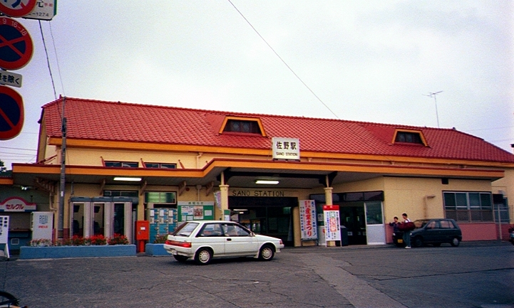 사노야쿠요케다이시의 몬젠마치로서 번성한 사노시의 대표역이다. JR 동일본 료모선과 도부 철도 사노 선이 환승하는 접속역이다. 교상화 이전의 구 역사는 "간토의 역 백선"에 선정된 쇼와 시대 초기의 양식 목조 건축으로, 료모 선의 다른 주요 역에서도 비슷한 건축을 볼 수 있었다. 또한 구 역사는 역전 광장이 존재하지 않는 특이한 형태였다.교상 역사를 갖추고 있으며, 남북을 연결하는 자유 통로가 설치되어 있다. 북쪽 출구에는 엘리베이터, 남쪽 출구에는 엘리베이터와 에스컬레이터가 설치되어 있다.