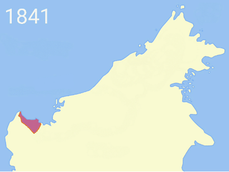 1824년부터 1830년까지 브루나이 술탄의 대표인 펭기란 인데라 마코타(Pengiran Indera Mahkota)는 쿠칭 지역의 안티몬 광석 개발을 주도했다.[48] 안티몬 생산량 증가로 인한 세금 문제로 내란이 발생했고, 1839년 술탄 오마르 알리 사이푸딘 2세(Omar Ali Saifuddin II)는 영국인 제임스 브룩(James Brooke)에게 도움을 요청했다.[49] 브룩은 반란 진압에 성공하여 사라왁의 주지사직을 보상으로 받았다.[49][50]