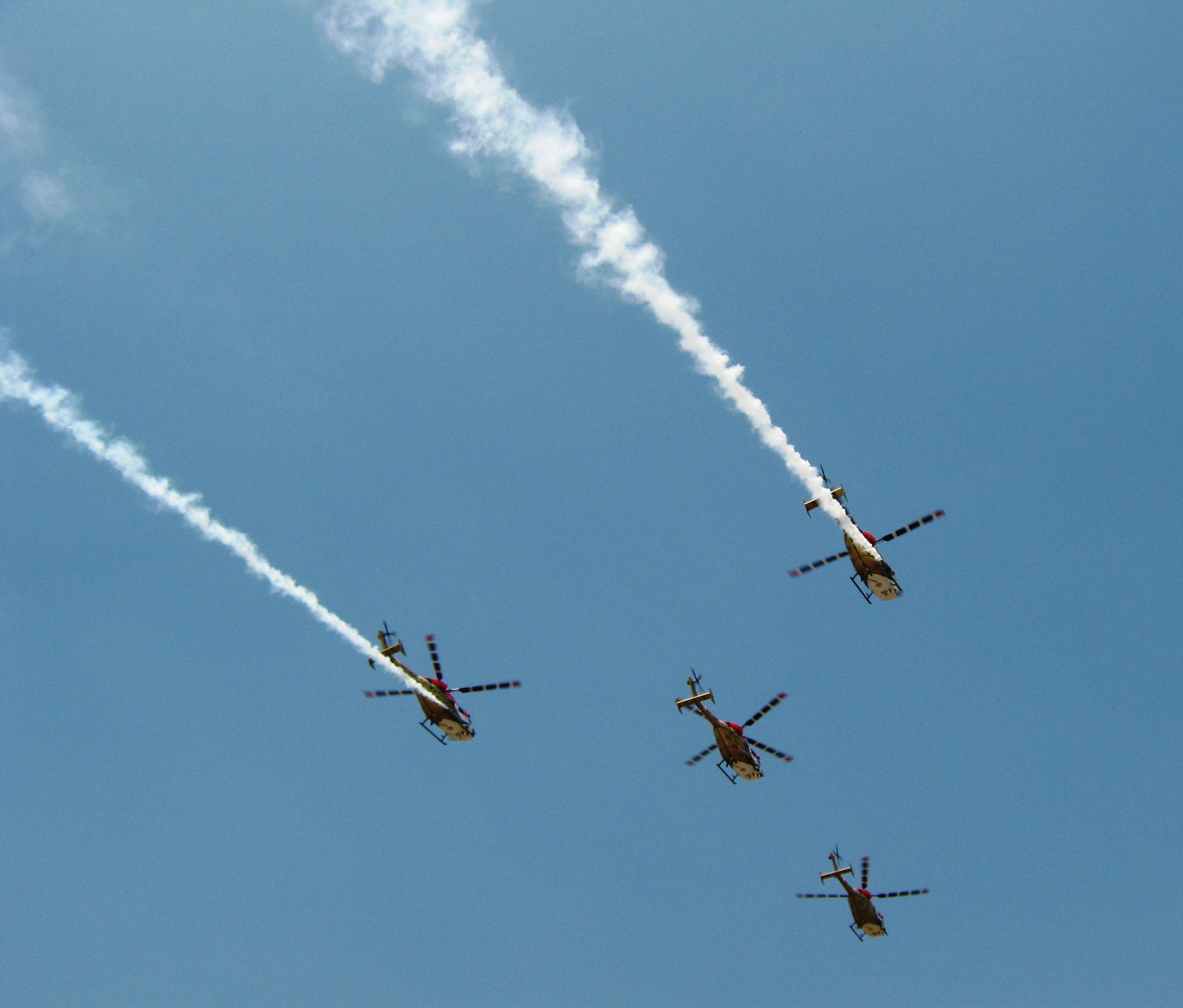 팀은 2023년에 5대의 헬리콥터 시연으로 전환하기 전까지는 4대의 헬리콥터를 사용하여 공연했다.[7][8]