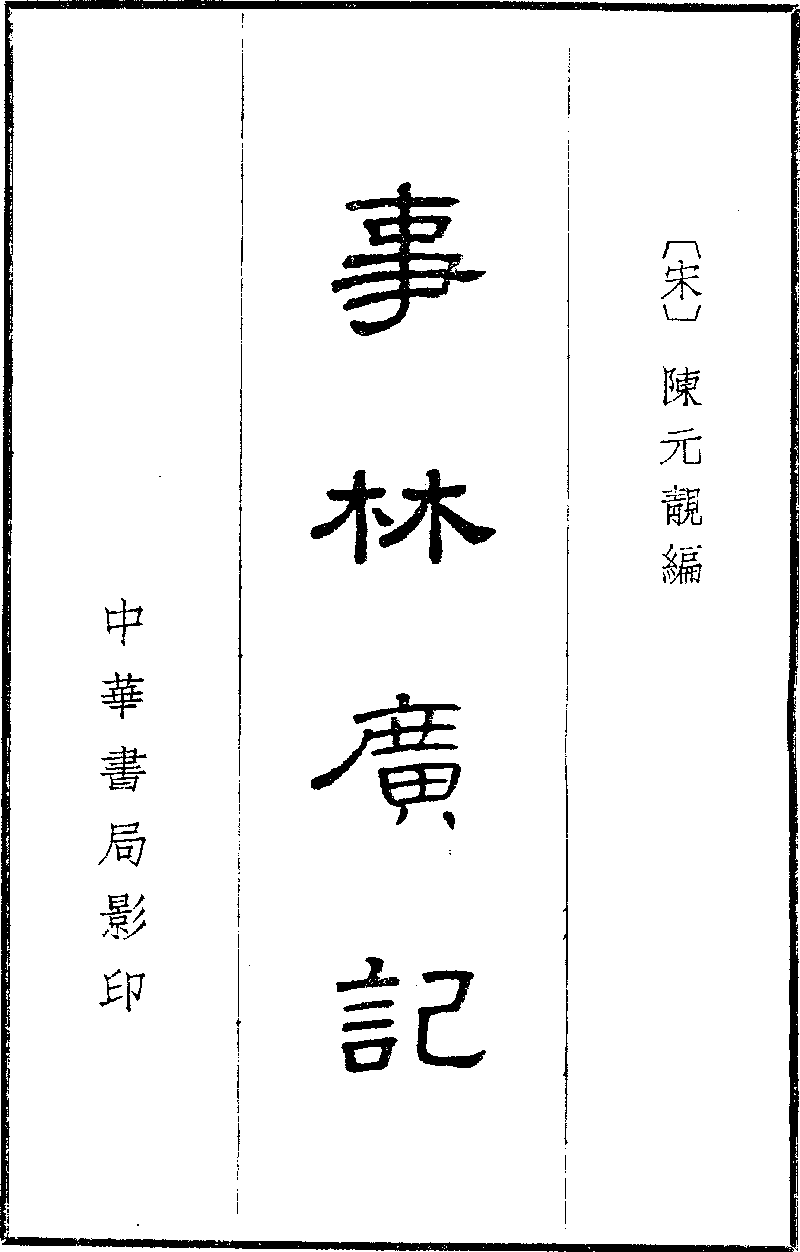 1963년 중화서국에서 원 지순 연간(1330-1333) 건안춘장서원각본(建安椿莊書院刻本)으로 《사림광기》를 영인하였다. 이 책은 학계에서 자주 인용된다. 이 영인본은 중일 전쟁 이전에 고궁박물원 소장본을 상무인서관이 촬영한 사진을 바탕으로 제작되었으며, 중국 학자 후다오징의 '전언'이 추가되었다. 전언에는 진원경의 생애, 저서, 《사림광기》의 내용 및 판본에 대한 분석이 담겨 있어, 《사림광기》 연구에 권위 있는 저작으로 평가받고 있다.[5]3. 2. 기타 판본