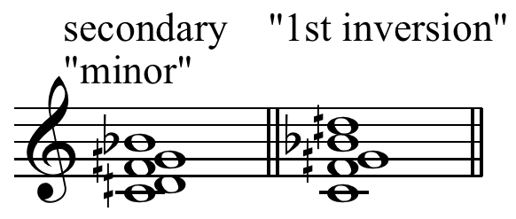 작곡가 찰스 아이브스는 C–D 반♯–F–G 반♯–B♭ 화음을 전통적인 조성의 단음계 화음과 유사한, 사분음 음계의 "이차적" 화음으로 적합한 가능성으로 보았다. 그는 이 화음이 사분음 음계의 어떤 음에서도 구성될 수 있다고 생각했다.[4][23]