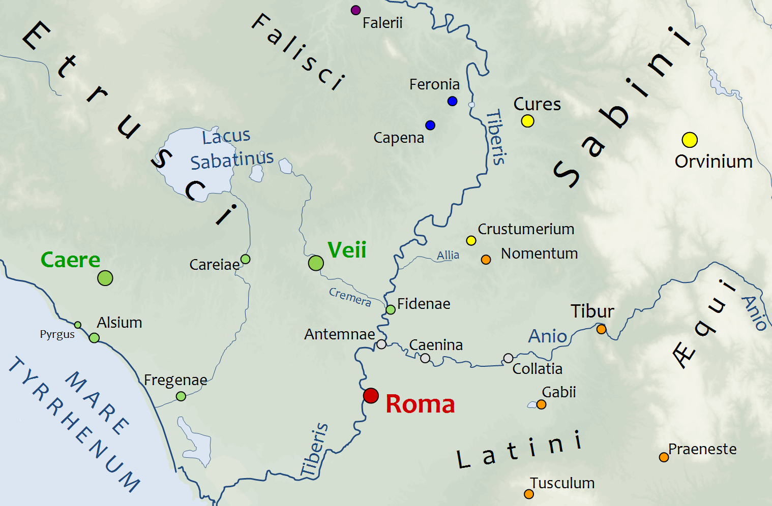 이에 카이니나, 안템나이, 크루스투미니, 그리고 사비니족이 로마와 전쟁을 벌였다. 로마는 각 부족과의 전투에서 모두 승리하여 영토를 확장하였다. 로물루스는 백성을 30개의 쿠리아(시민단)으로 나누었는데, 이 쿠리아의 이름은 납치된 사비니 여성의 이름에서 따온 것이라고 한다.