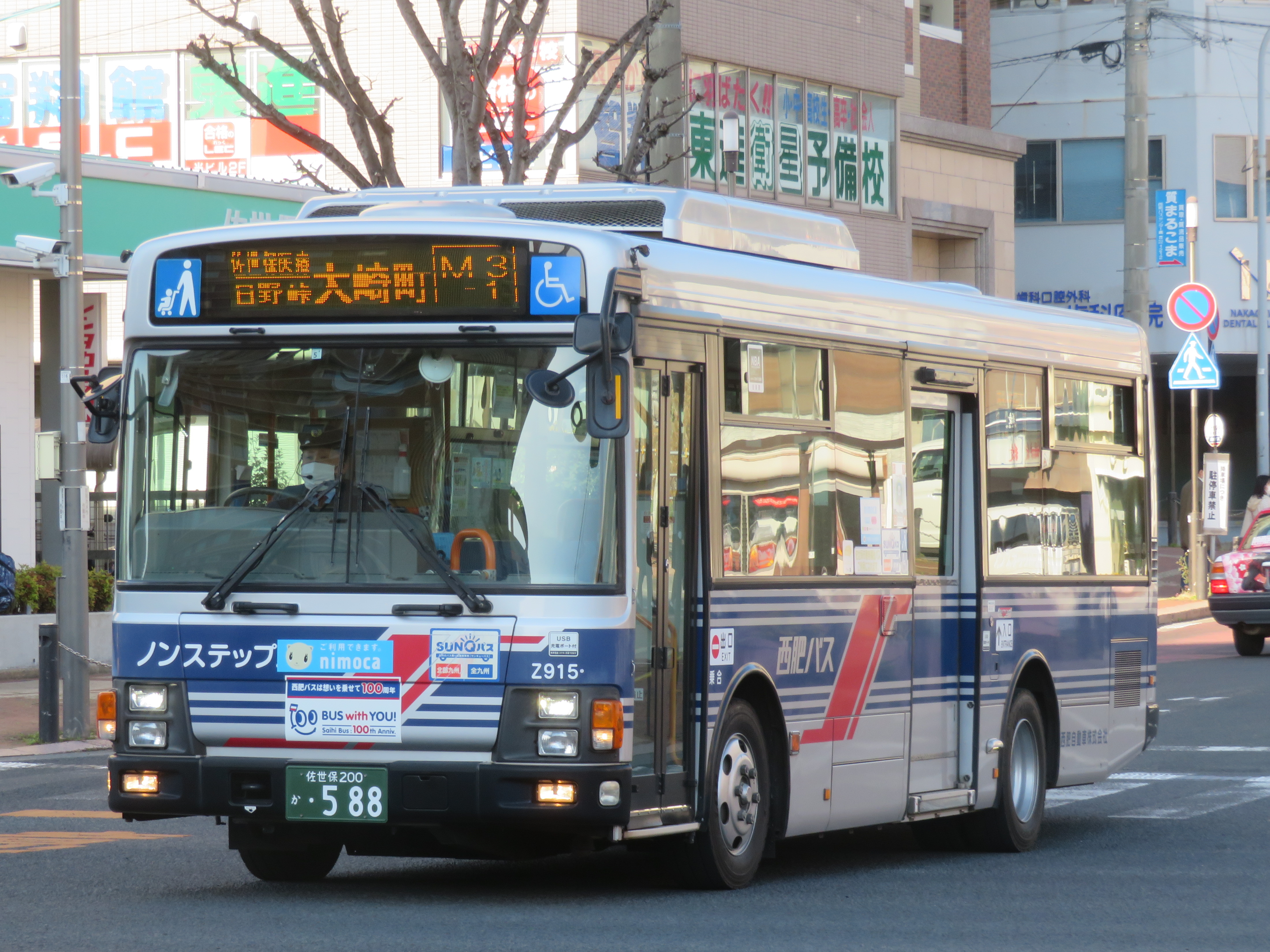 - * 니시큐슈선: 스에타치바나 - 에무카에시카마치 - 타카이와(나가사키) - 이노츠키 - 센류가타키 - 요시이(나가사키) - 코다(사자) - 세이호고코마에 - 사자 - 쿠라 - 마사루 - 타나가타 - 아이노우라 - 다이가쿠 - 카미아이노우라 - 모토야마(나가사키) - 나카자토 - 카이제(나가사키) - 노나카 - 히다리이시 - 센푸쿠지 - 야마노타 - 키타사세보 - 나카사세보 - 사세보추오 - 사세보