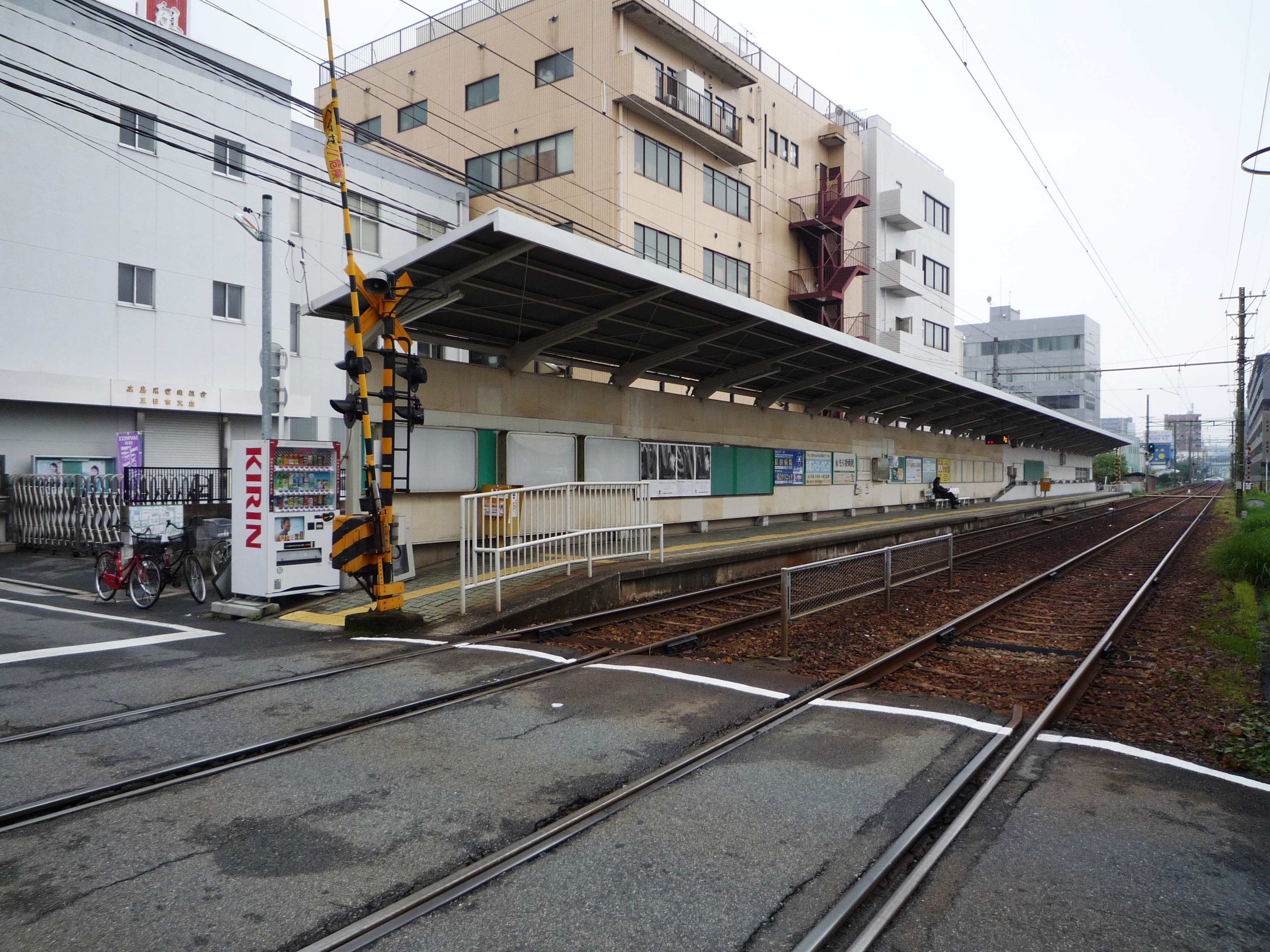 상행 승강장의 히로덴니시히로시마 방면 끝에는 과거 미야지마선에서 운행되던 철도 차량을 위해 사용되었던 높은 승강장이 일부 남아있다[5][7]。
