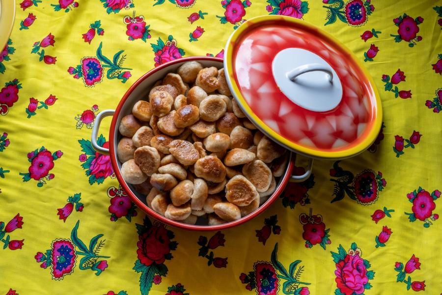 마르고그전체 밀가루 (밀기울), 식용 소금 및 물로 준비한다. 재료를 함께 반죽하고 고기가 부분적으로 익을 때까지 둔다. 그런 다음 채소를 넣고 반죽을 같은 냄비 위에 육수 위에 얇게 펴서 부드러워질 때까지 둔다.[10]