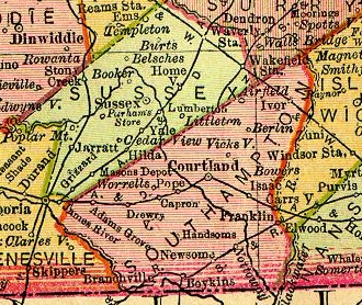 1749년, 블랙워터 강 서쪽의 와이트섬 군 지역은 사우샘프턴 군으로 조직되었다.[3] 이후, 현재 서퍽 독립시인 낸섬드 군의 일부가 사우샘프턴 군에 추가되었다.[3] 이 지역은 담배 재배에 사용되었고, 비교적 짧은 기간 동안 많은 백인 계약 노동자들이 식민지로 이주한 후에는 혼합 작물 재배에 사용되었으며, 이는 노예화된 아프리카계 미국인의 노동에 의존했다.