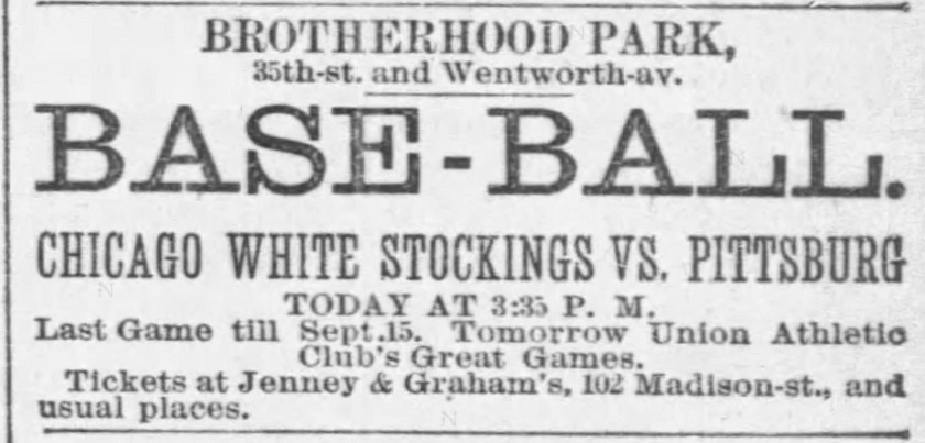 1890년 당시 내셔널 리그 클럽은 "앤슨의 콜츠"로 알려졌으나, 선수 연맹 클럽은 "화이트 스타킹스"라는 옛 별칭을 사용했고, 처음에는 야구장을 "화이트 스타킹 파크"라고 명명했다.[3] 하지만 곧 "브라더후드 파크"로 이름이 바뀌었다.[3] 클럽은 계속 "화이트 스타킹스"라고 불렸지만, 지역 신문은 "파이어리츠"라고 칭했다.[3] 찰스 코미스키는 1900년 자신의 새로운 팀에서 다시 "화이트 스타킹스"라는 이름을 사용했다.[3]