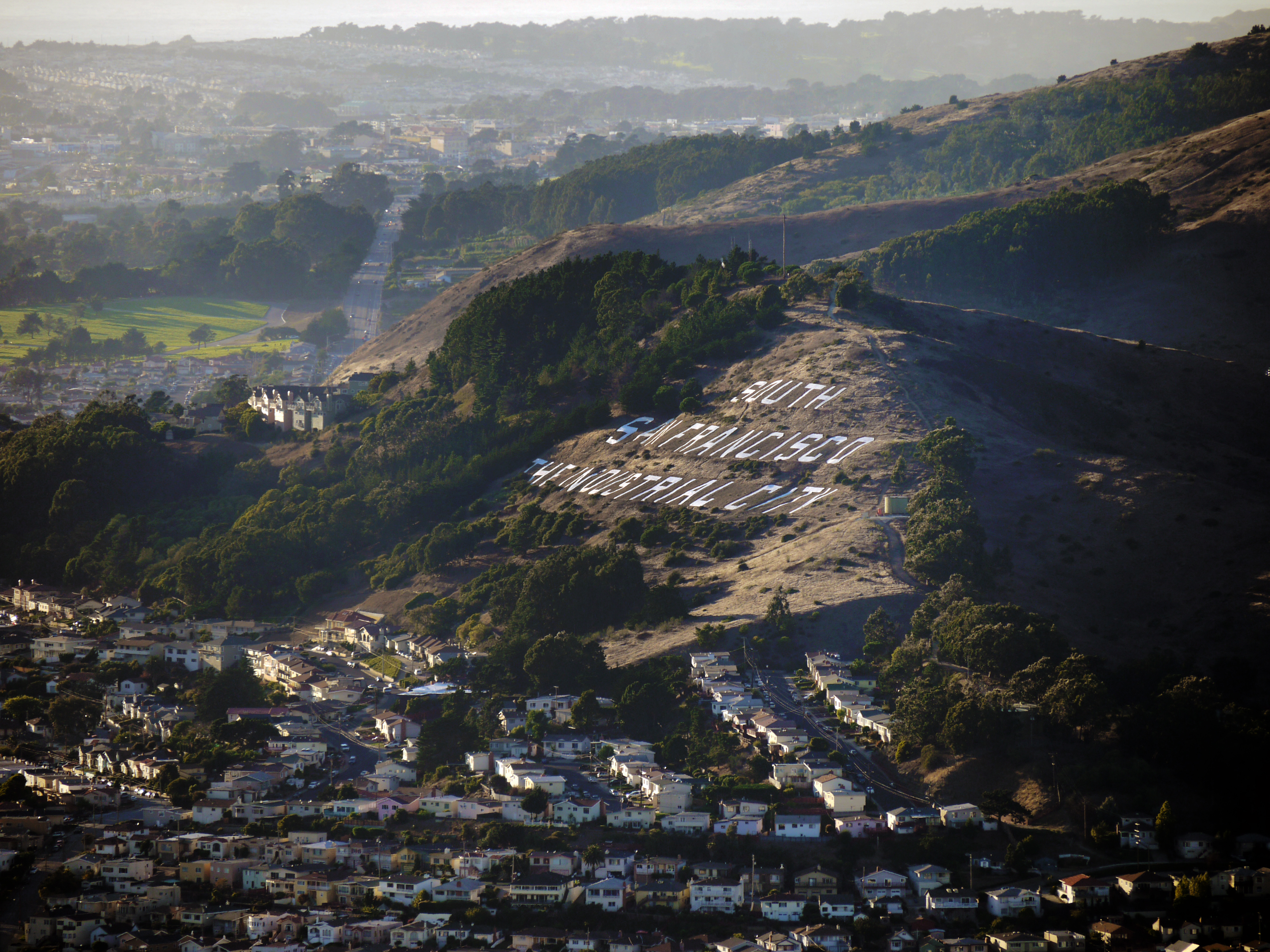 이 도시는 특히 도시 북쪽에 있는 사우스샌프란시스코 언덕 표지판으로 유명하다. 여기에는 "사우스샌프란시스코, 산업 도시"라는 커다란 흰색 글자가 새겨져 있는데, 이는 도시의 산업적 과거를 기리는 것이며, 국립 사적지로 지정되어 있다.[17]