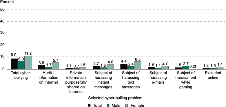 사이버 괴롭힘은 상대방에게 해를 끼칠 의도를 가지고 반복적으로 행해지는 행위이다.[32] 사이버 괴롭힘은 괴롭힘, 사이버 스토킹, 명예 훼손 (평판과 우정을 해치기 위해 잔혹한 소문과 거짓말을 보내거나 게시하는 행위), 사칭, 배제 (의도적으로 그리고 잔혹하게 누군가를 온라인 그룹에서 배제하는 행위)를 통해 자행된다.[32]