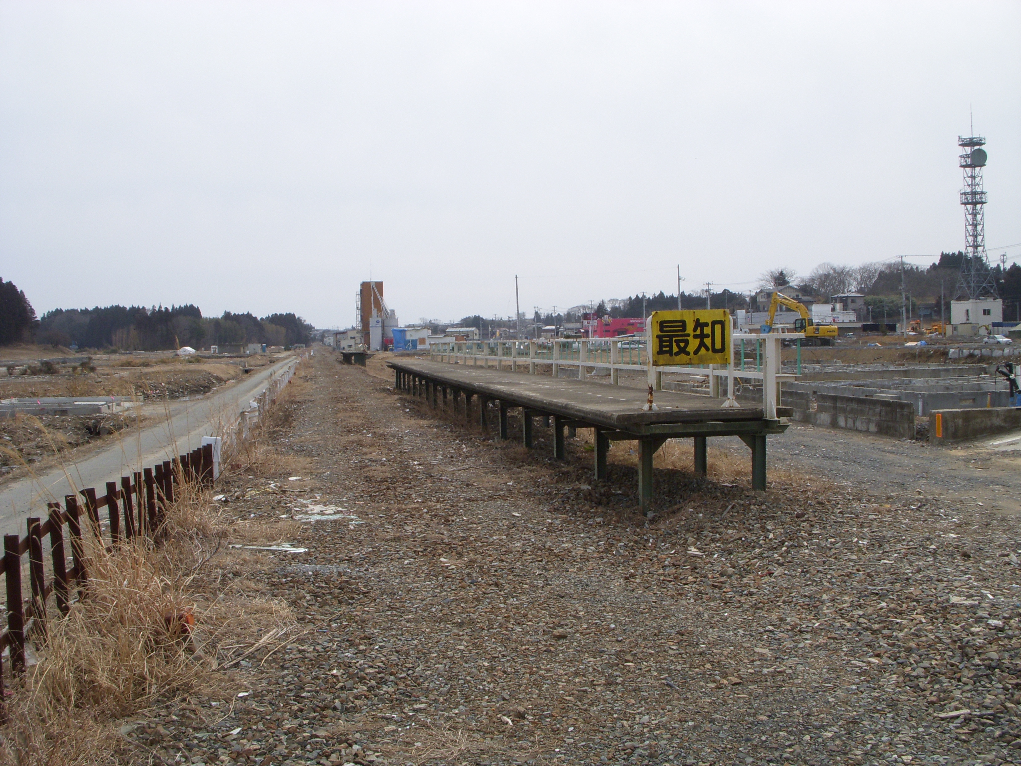 2011년 동일본 대지진과 쓰나미로 역의 플랫폼을 제외한 모든 시설이 유실되어, 현재는 (BRT) 노선으로 대체되었다.: 게센누마선 BRT