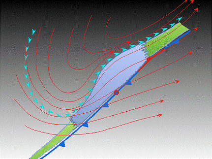 온대 저기압은 전선을 따라 파동 형태로 시작하여, 수명 주기 후반부에 냉핵 시스템으로 폐색된다. 하지만 일부 강력한 온대 저기압은 온난 폐색이 발생할 때 온핵 시스템이 될 수 있다. 초기 극외곽 저기압은 잎 모양의 구름 형성과 수직으로 위치하며, 상층 제트 기류 축은 연한 파란색으로 표시된다.