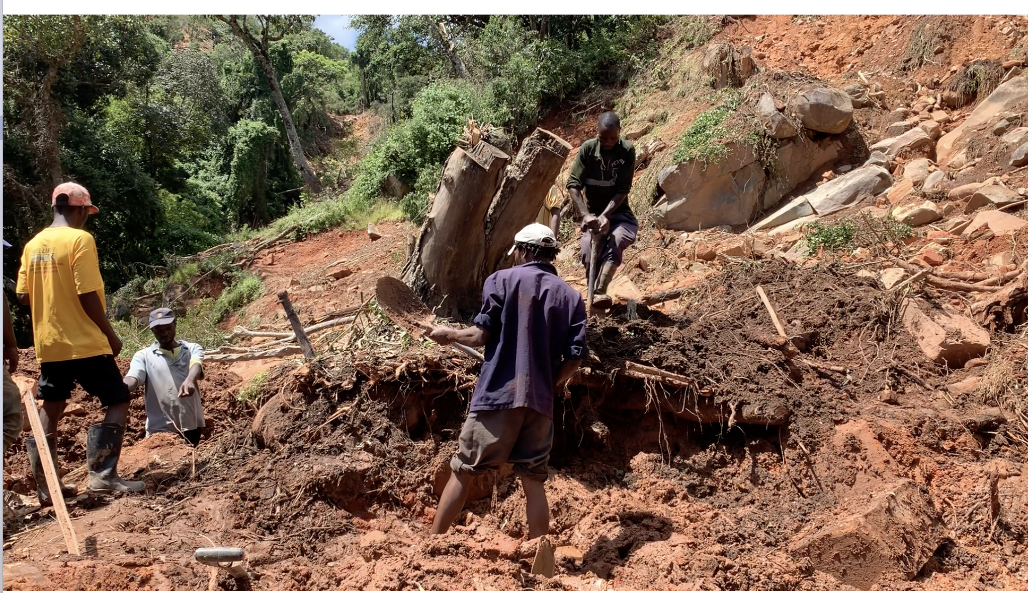 사이클론 이다이로 인한 산사태 후 실종자를 수색하는 주민들 (치마니마니 지구)