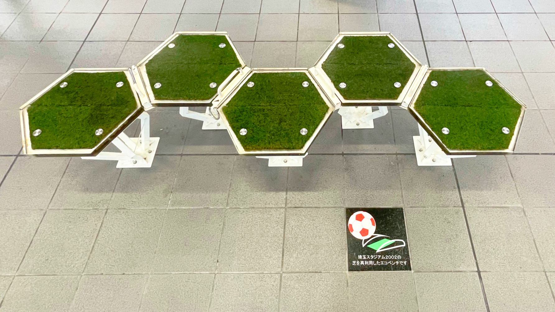 천연잔디는 개장 당시부터 부분적인 손상 부위 교체 외에 대규모 전면 교체는 이루어지지 않았다. 그러나 시간이 지나면서 보수 공사 등으로 표면이 평탄하지 않게 되었으며, 잔디 생육에 적합한 온도를 조절하는 '지온 컨트롤 시스템'의 노후화 및 피치 자체의 열화가 진행됐다. 이로 인해 선수 부상으로 이어질 수 있는 성능 저하가 우려돼, 사이타마현은 잔디 전면 교체를 결정했다. 미야기현 와타리군 야마모토정의 계약 농가에서 재배한, 성장이 빠르고 마모에 강한 특징을 가진 천연잔디를 새로 깔기로 했다. 당초 2021년 11월 착공 예정이었으나, 2022 FIFA 월드컵 카타르 대회의 아시아 예선 일정에 지장을 준다는 일본 축구 협회의 요청으로 착공을 2022년 J1리그 종료 후인 11월로 연기했다. 이때 지온 컨트롤 시스템 갱신 및 스프링클러 설치 공사도 함께 진행했으며 2023년 3월에 잔디 설치를 완료하고, 양생 기간을 거쳐 같은 해 4월부터 사용이 허가됐다.[20][21]3. 2. 친환경 시설