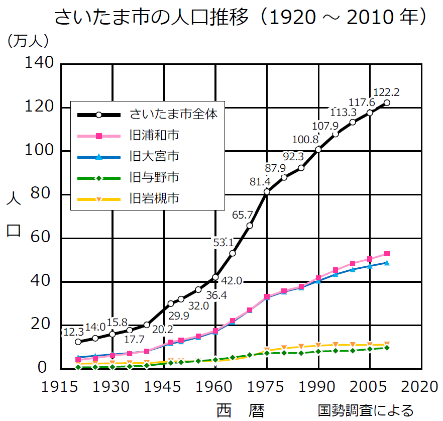 합병 이전 우라와시, 오미야시, 요노시의 역사는 우라와구, 오미야구, 요노(추오구) 문서를 참조.