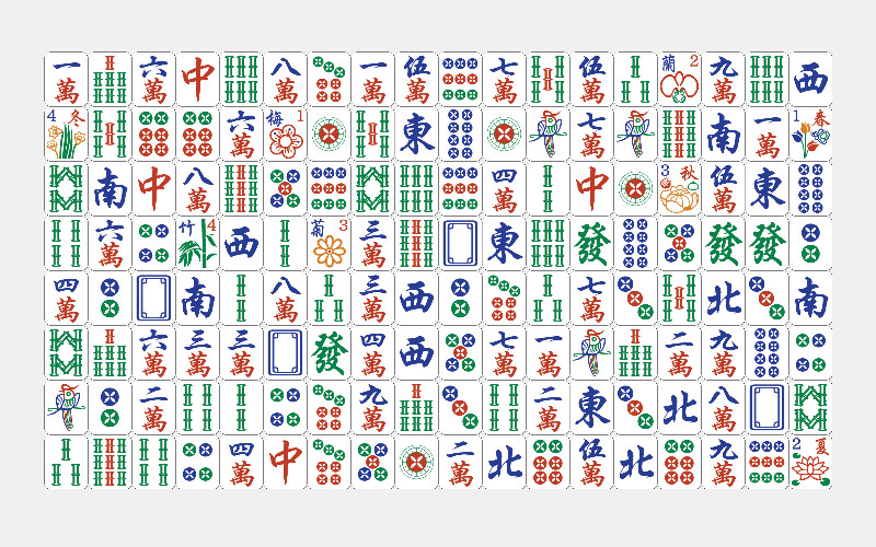 먼저 8행 17열로 마작 패를 무작위로 늘어놓는다. 다음 조건을 만족하는 경우, 같은 종류의 패 2개를 제거할 수 있다.