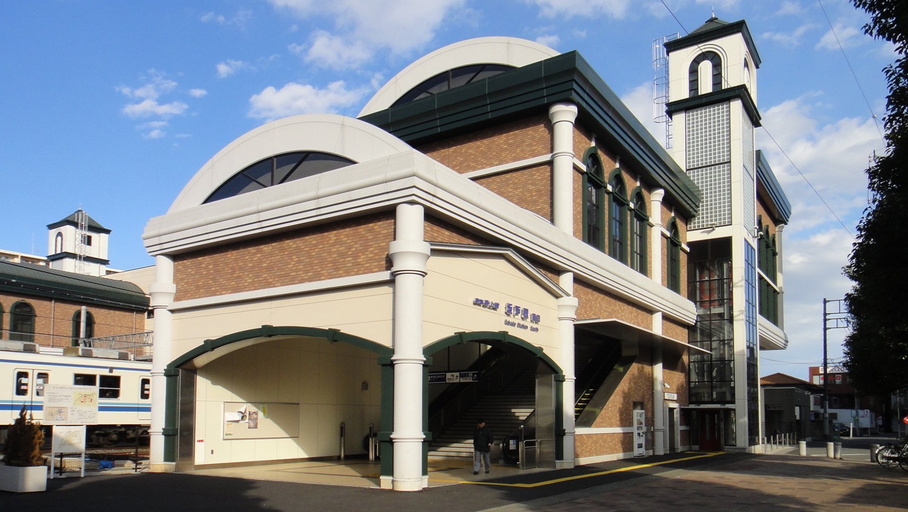 섬식 승강장 2면 4선의 지상역으로, 교상역사를 가지고 있다. 에스컬레이터, 엘리베이터, 정기권 매표소가 설치되어 있다.[29]