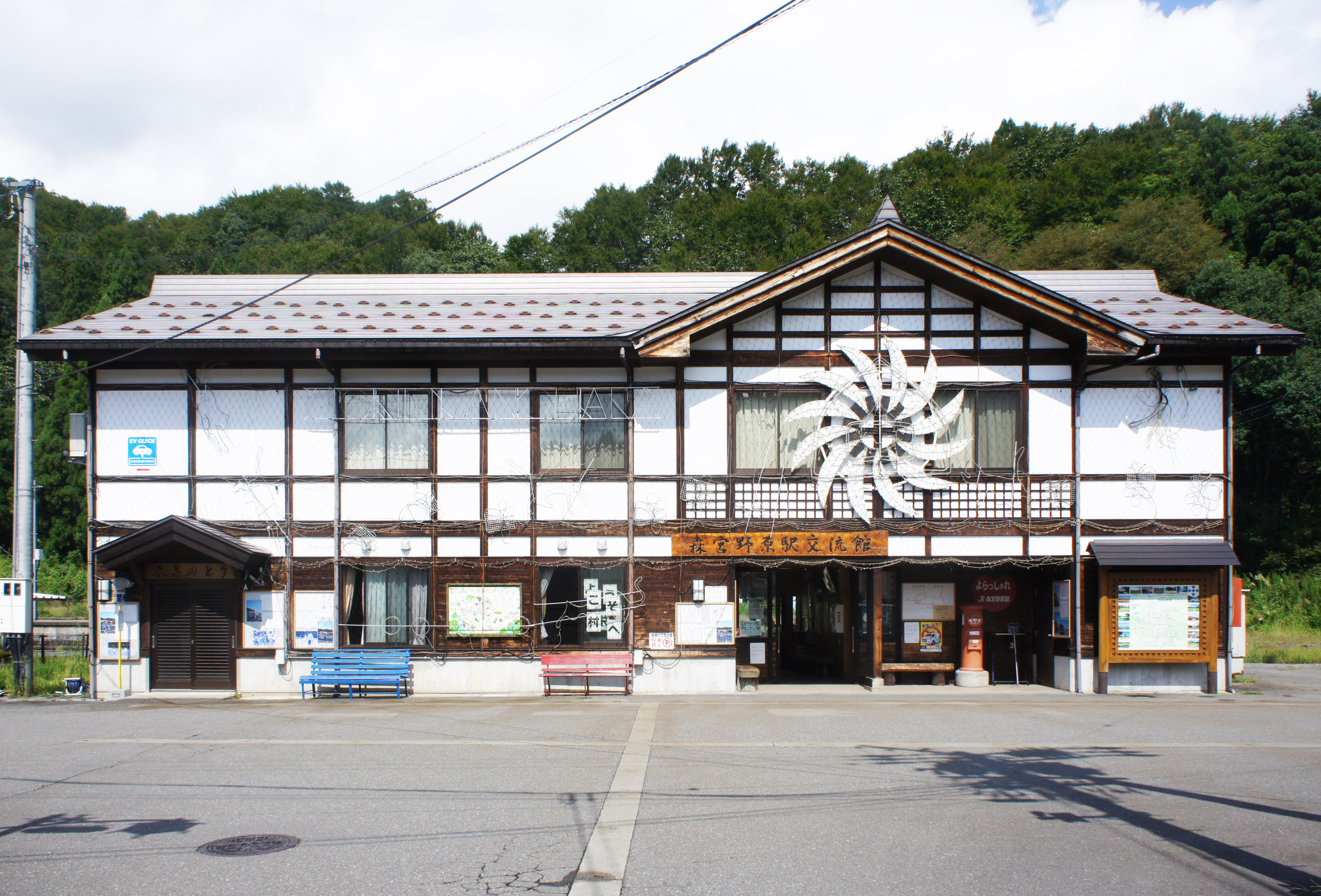 사카에촌의 중심역은 '''모리미야노하라역'''이다.