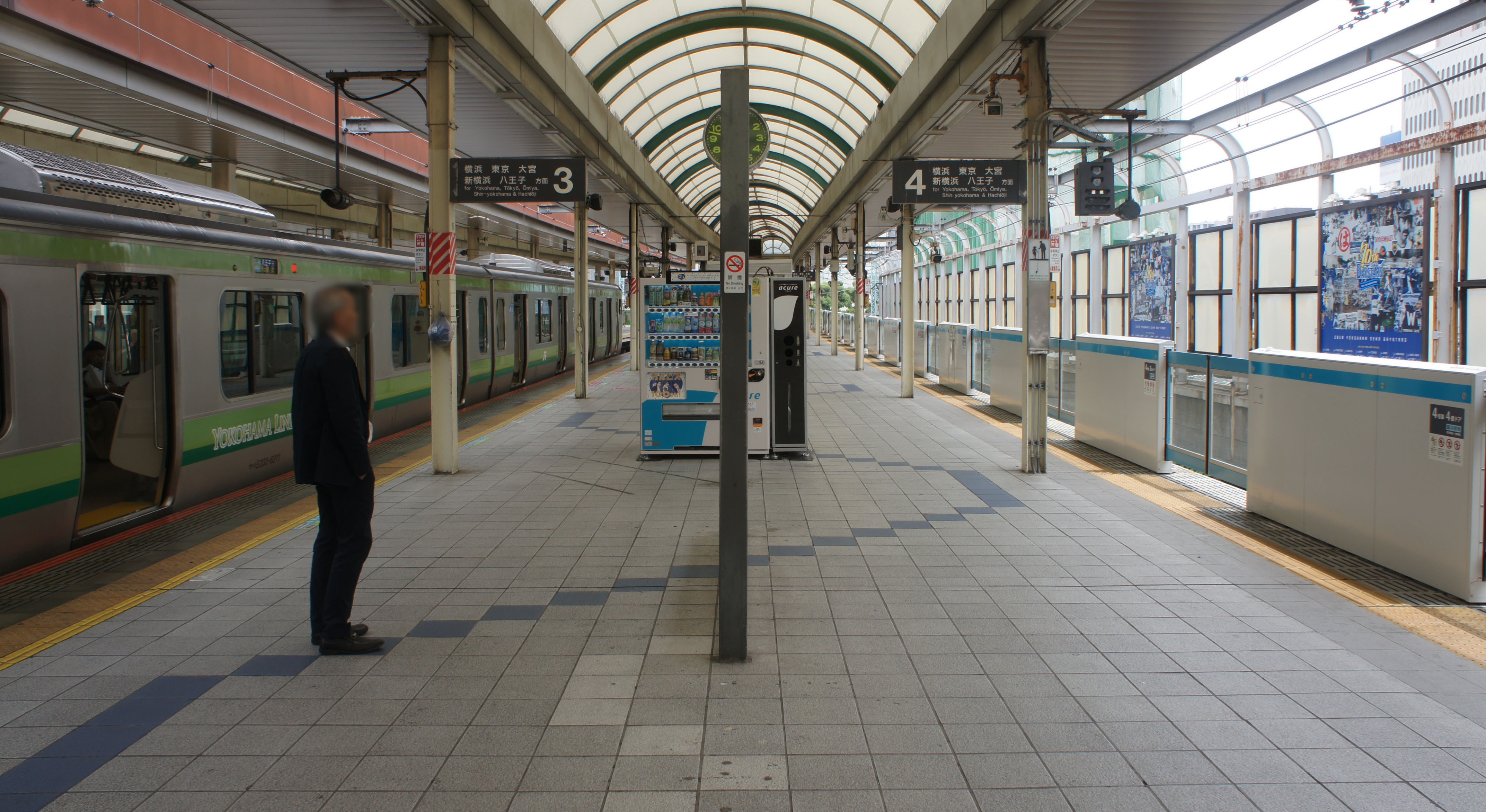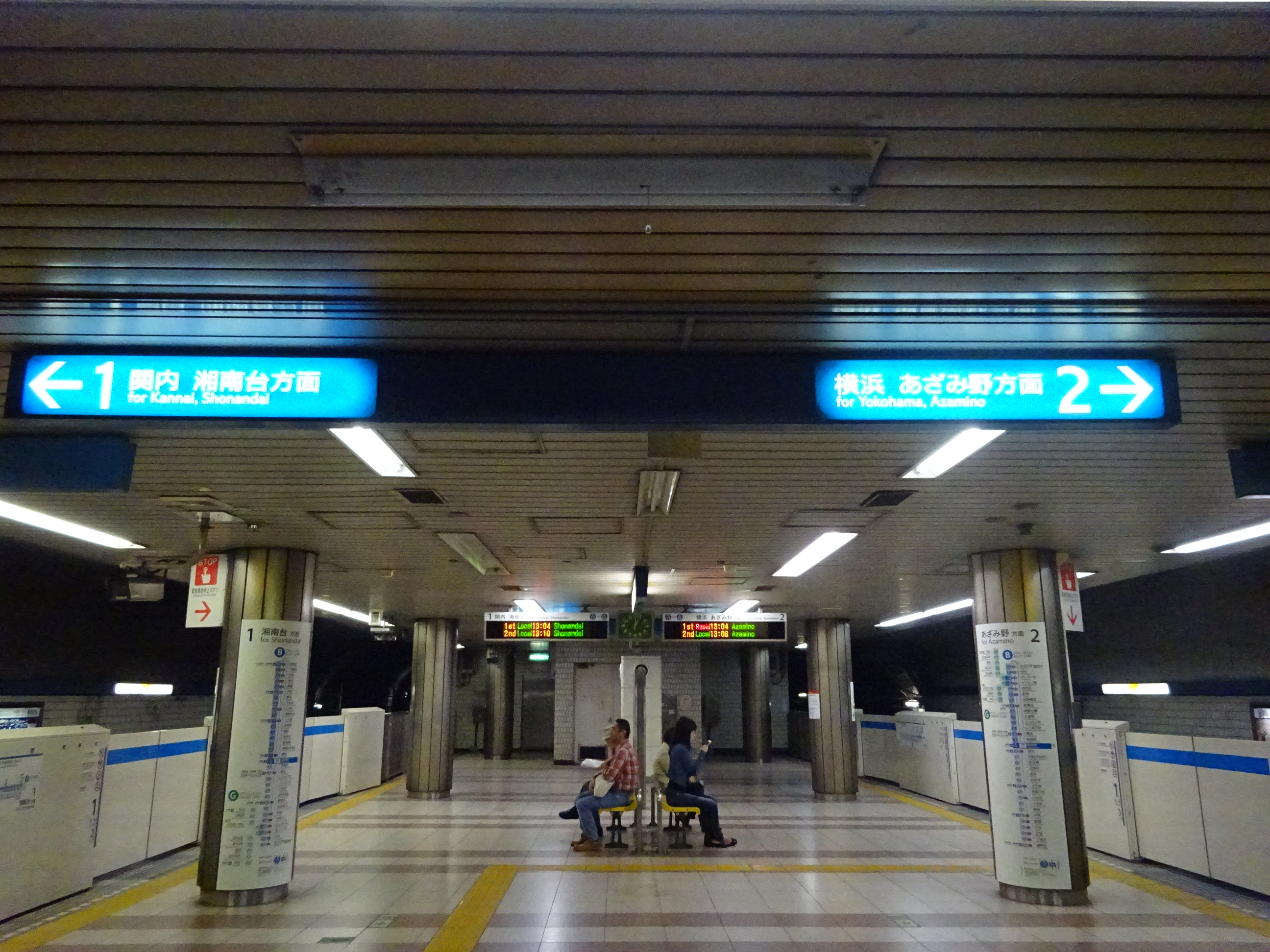 요코하마 시영 지하철(블루 라인) 승강장은 역사 남쪽 지하 4층에 위치해 있다.