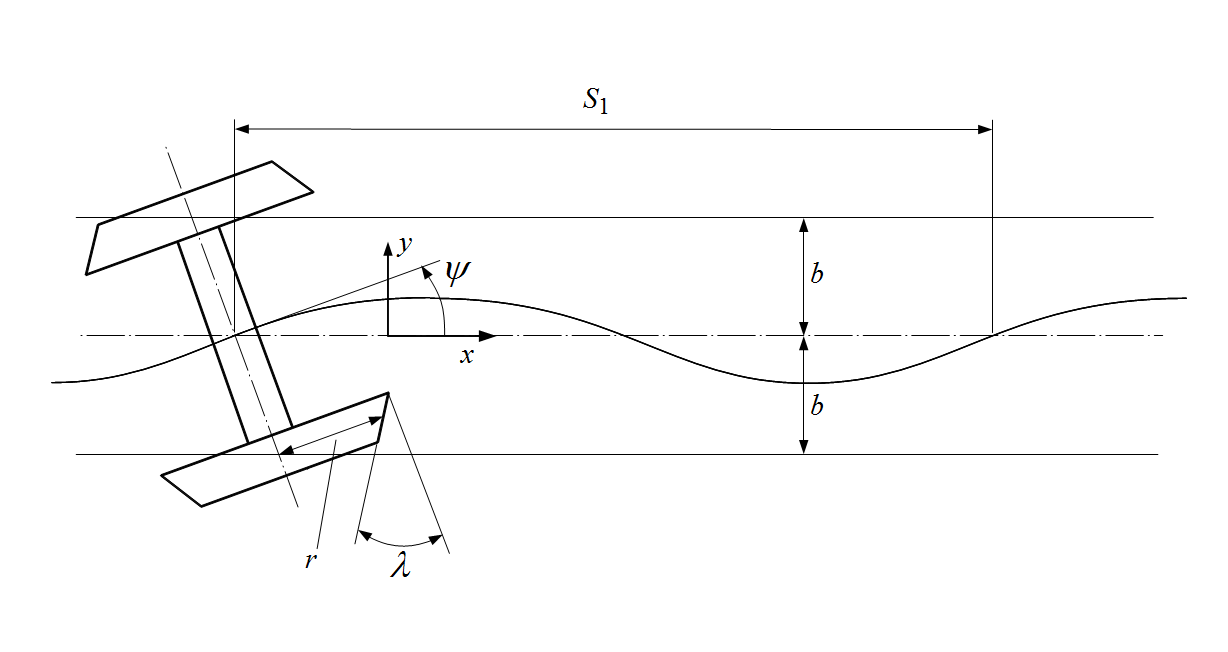bogie영어 대차는 2개 이상의 윤축을 갖추고 있으며, 사행동은 다음 식으로 나타낼 수 있다.: