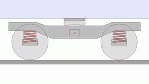 위 식은 좌우 바퀴 접촉점 간격이 축간 거리 절반 정도 이하()임을 전제로 한다.[13] 윤축을 탄성 지지하는 단대차의 뱀행동 파장은 1윤축의 기하학적 뱀행동 파장과 강대차의 기하학적 뱀행동 파장 사이에 위치한다.