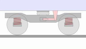 실제 차축은 탄성 지지되어 있으며, 어느 정도의 한계 속도까지는 사행동이 억제된다. 실제 철도 차량은 차체, 대차, 차륜이 서로 연결된 복잡한 구조를 가지고 있으므로, 뱀행동 발생 여부를 판단하기 위해 수치 해석 기법을 사용하여 운동 방정식을 푼다.[13]