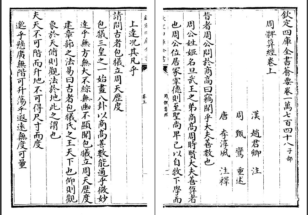 건륭 39년에 간행된 《사고전서》에는 《주비산경》과 《음의》, 《구장산술》, 《해도산경》, 《손자산경》, 《오조산경》, 《오경산술》, 《집고산경》 그리고 《하후양산경》이 수록되었다. 그 후 대진이 또 집고각본을 토대로 이들 10부 산서에 대해 새로 교감을 행하였으며, 대진과 교유가 있었던 사돈가 공계함[5]이 나누어 미파사판(微波榭版)으로 찍어냈는데, 이때 처음으로 산경십서라는 제목을 사용하였다.