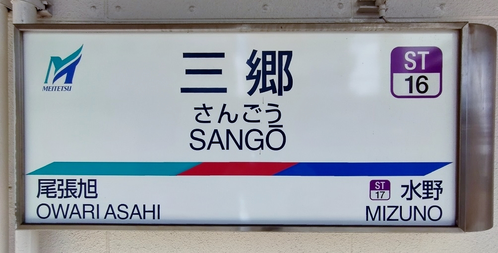오와리아사히역(ST15) - '''산고 역'''(ST16) - 미즈노역(ST17)