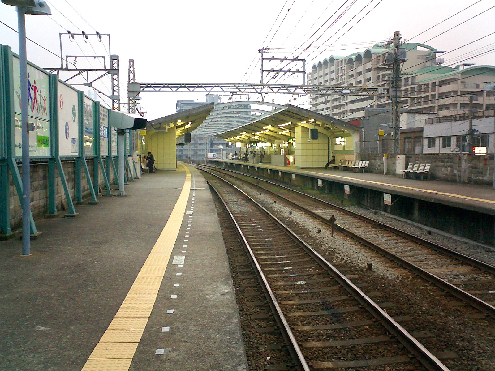 상대식 승강장 2면 2선의 고가역이다.[1] 승강장은 19m 차량 6량 편성에 대응한다. 개찰구는 지상에 있으며 동서쪽에 각각 1곳씩 있고,[1] 서쪽 개찰구에만 역무원이 배치되어 있다. 승강장은 2층에 있으며, 계단 또는 엘리베이터로 갈 수 있다.스룻토 KANSAI가 발행하는 PiTaPa와 그 제휴 카드를 사용할 수 있다. 배리어 프리 공사가 실시되어 각 승강장과 개찰층을 잇는 엘리베이터, 고베 누구나 화장실(다기능 화장실)이 설치되어 있다.