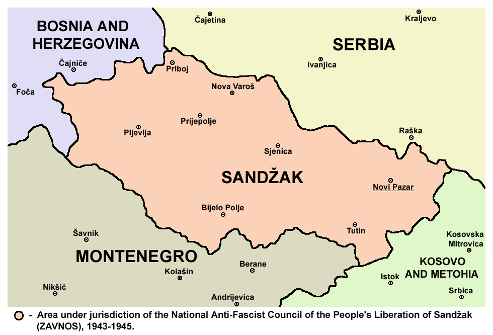 산자크 인민 해방 반파시스트 평의회(AVNOS)는 1943년 11월 20일 플레블랴에서 창설되었다. 1945년 2월, AVNOJ의 의장단은 산자크의 자치에 반대하는 결정을 내렸다. AVNOJ는 산자크가 자치를 위한 민족적 기반이 없으며 세르비아와 몬테네그로의 전체성을 붕괴시키는 것에 반대한다고 설명했다. 1945년 3월 29일 노비파자르에서 AVNOS는 AVNOJ의 결정을 수락하고 세르비아와 몬테네그로로 분할되었다.[34]