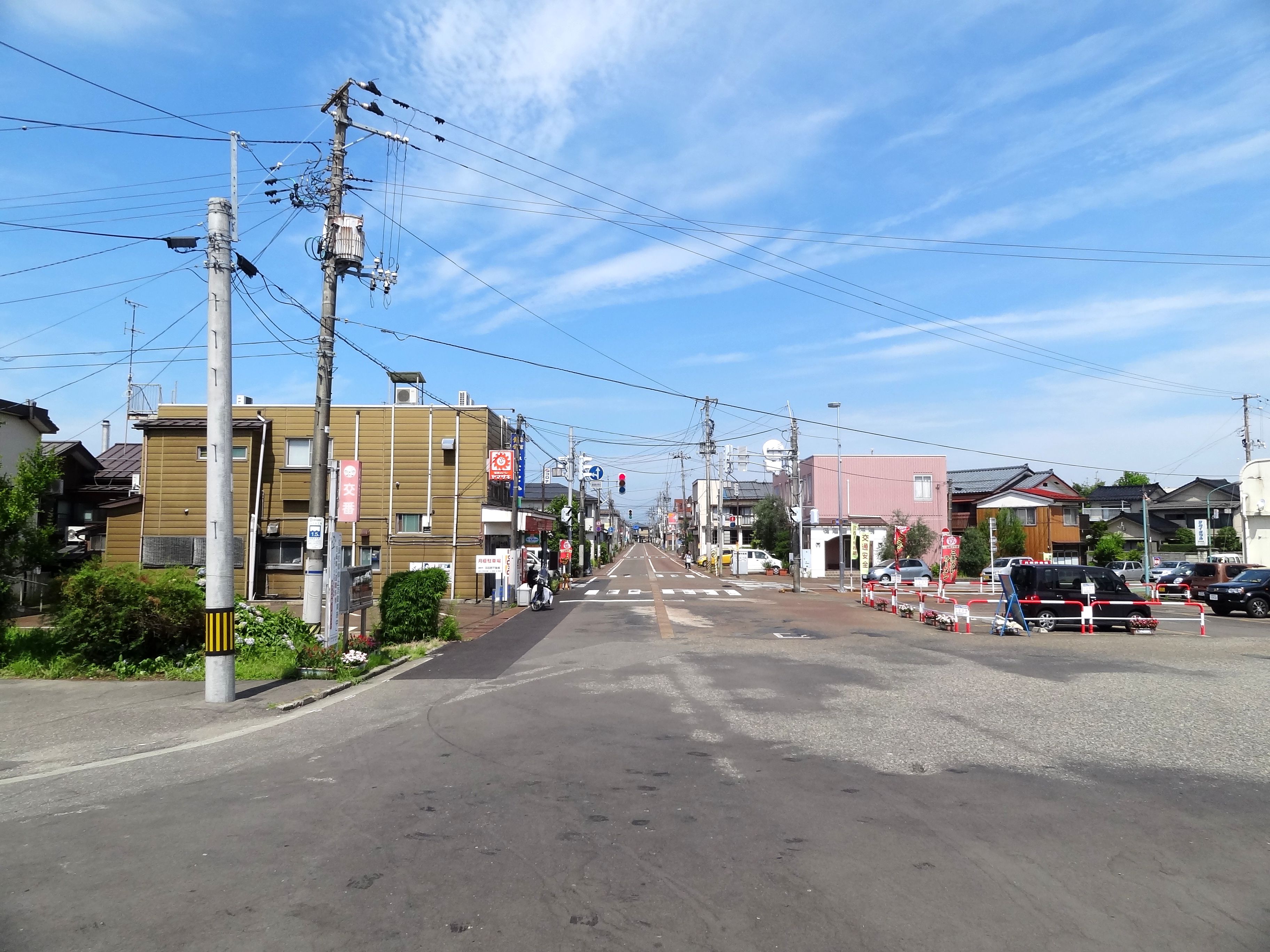 역 앞에는 파출소와 상점, 식당을 겸하는 여관, 볼링 볼링장 등이 있으며, 니가타현도 제35호 산조 정거장선이 북쪽으로 뻗어 있다.
