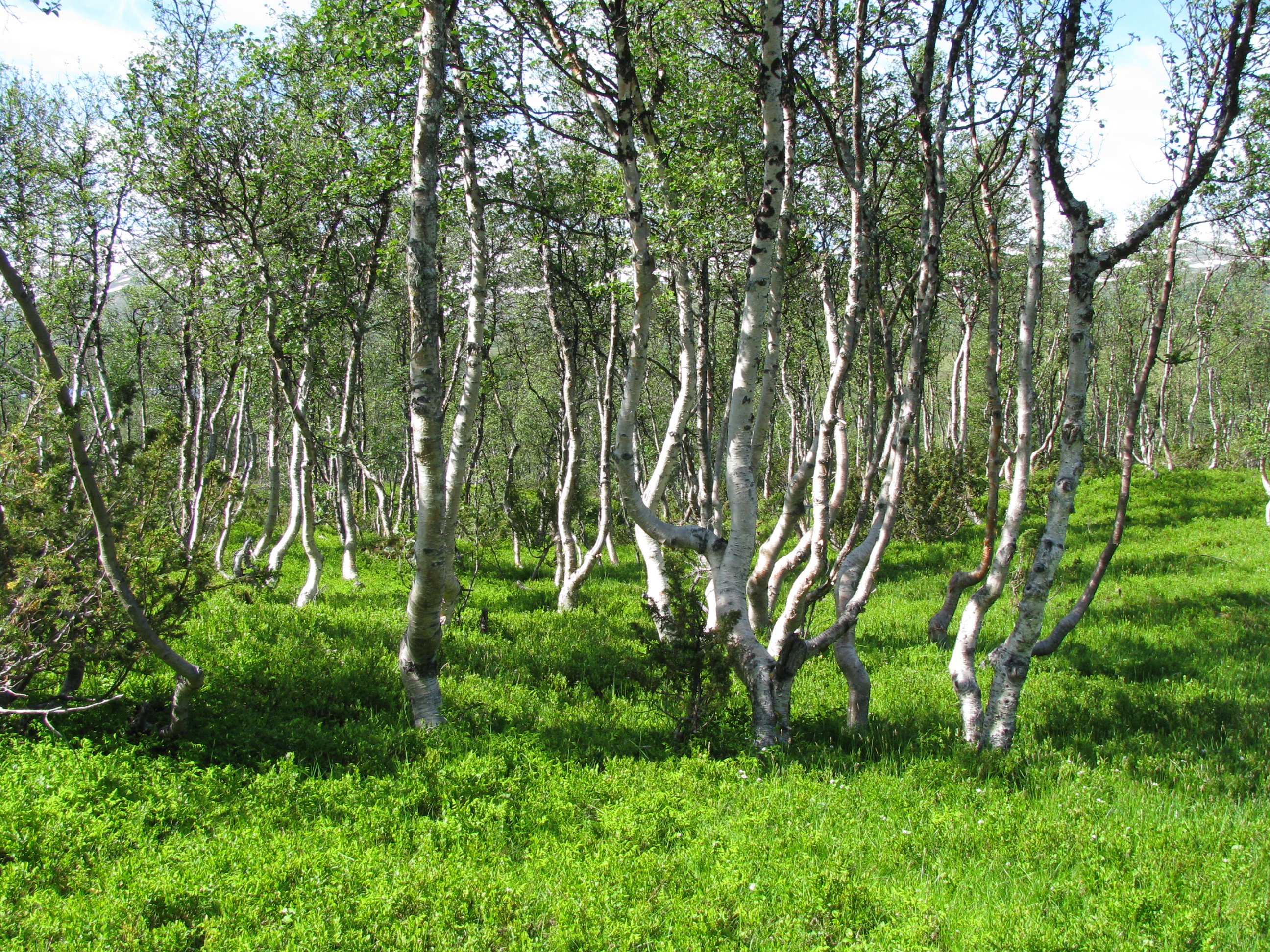 아고산대의 나무는 종종 크룸홀츠가 되는데, 이는 형태가 굽고 뒤틀린 왜소한 나무를 말한다. 수목 한계선에서 나무 묘목은 바위의 풍하측에서 발아하여 바위가 바람을 막아주는 높이까지만 자랄 수 있다. 추가적인 성장은 수평적이며, 가지가 토양에 닿는 곳에서 추가적인 뿌리가 발생할 수 있다. 눈 덮임은 겨울 동안 크룸홀츠 나무를 보호할 수 있지만, 바람의 방벽이나 눈 덮임보다 높은 가지는 일반적으로 파괴된다. 잘 자리 잡은 크룸홀츠 나무는 수백 년에서 천 년 이상 될 수 있다.[34]