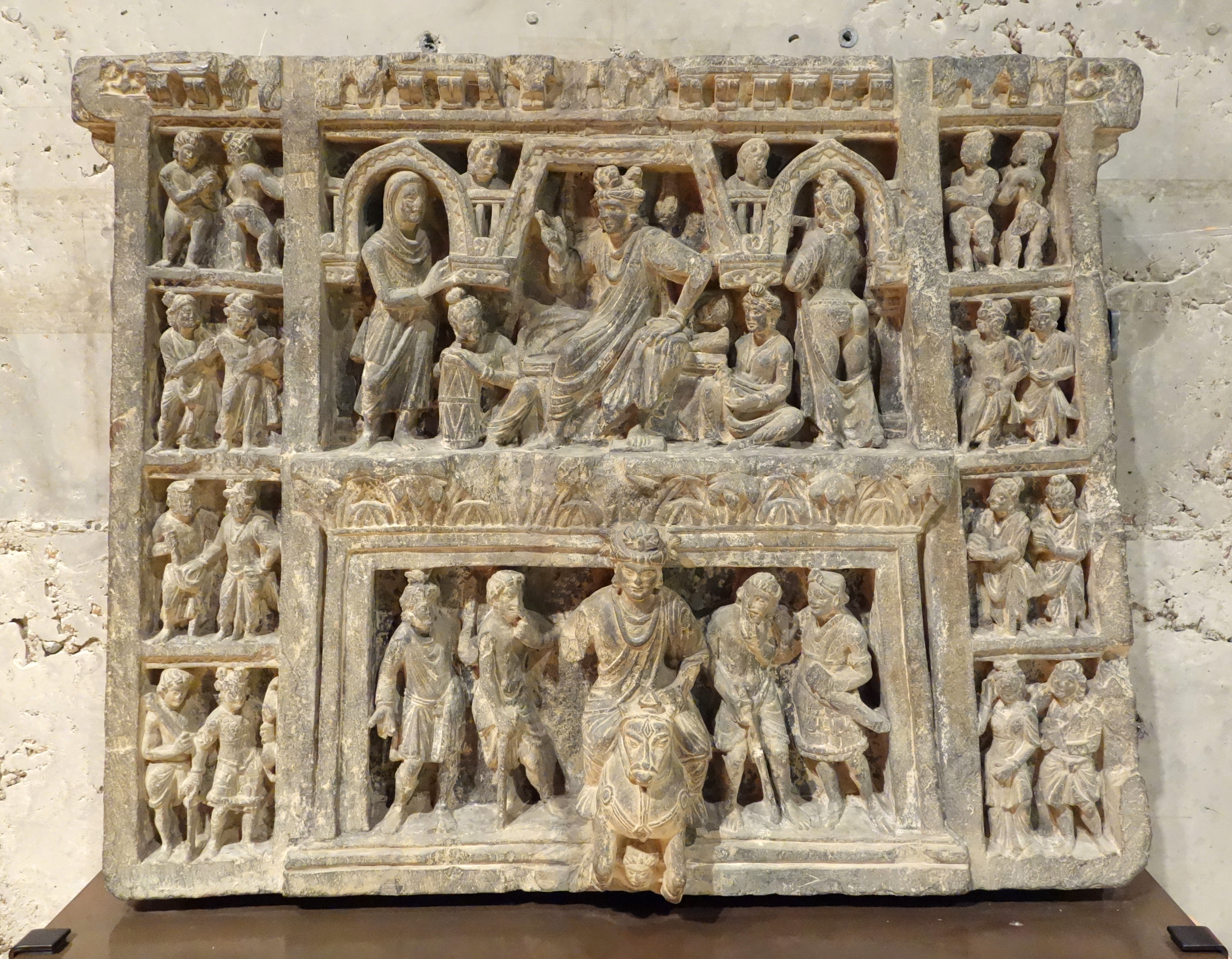 장식이 없는 지상 난간은 대략 기원전 150년으로 거슬러 올라간다.[26] 계단 난간에 몇 개의 부조가 있다.