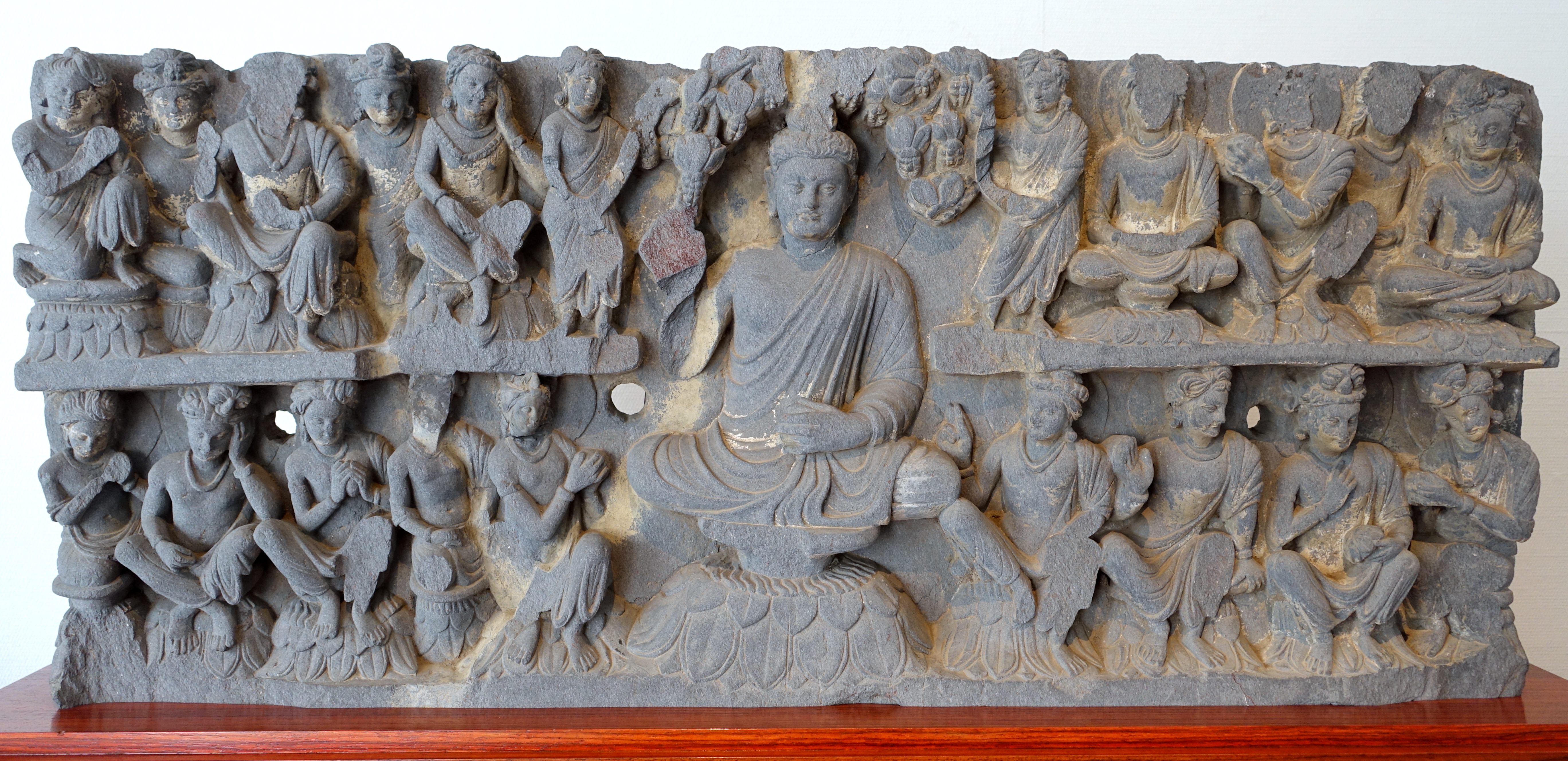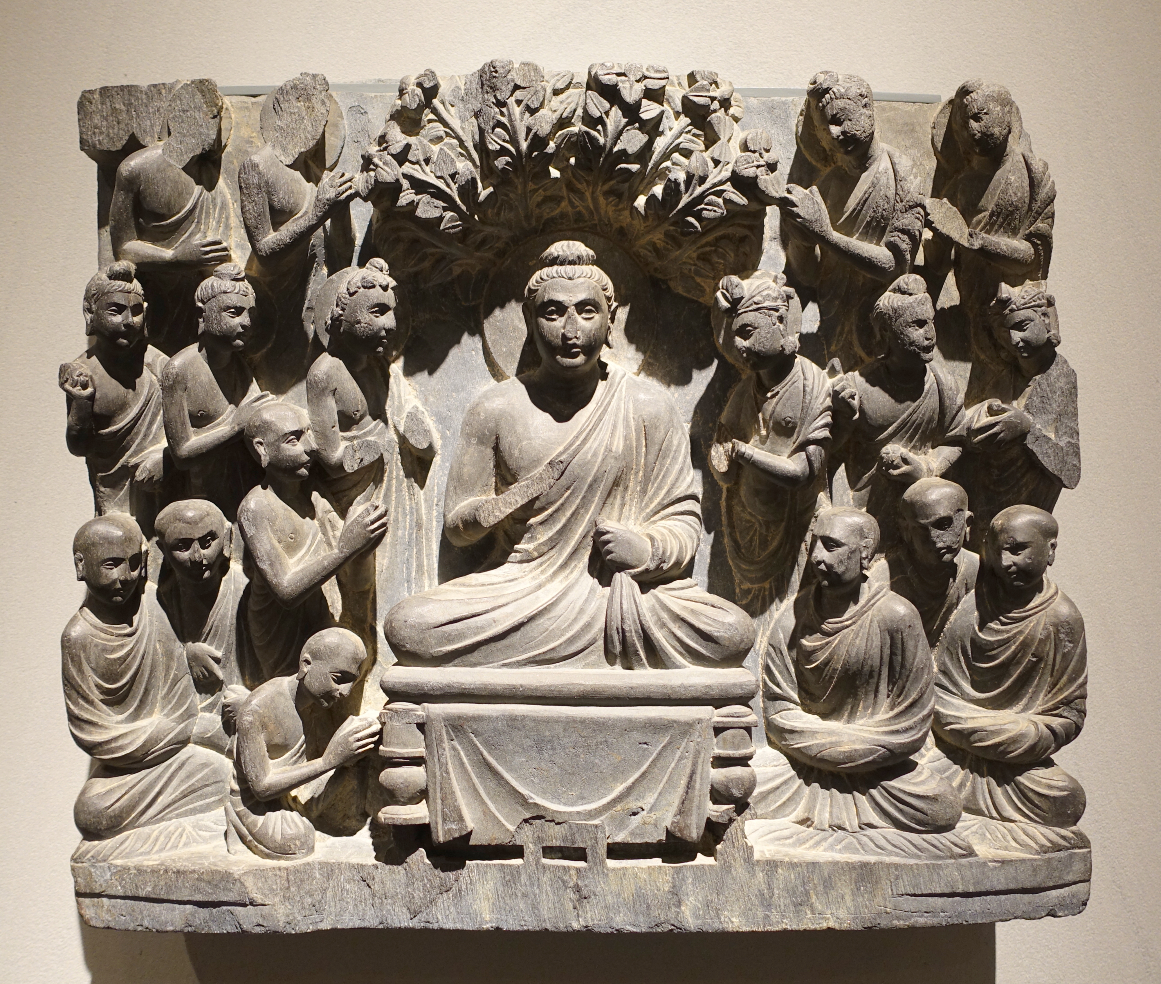 간다라 여래좌상은 2~3세기에 제작된 석가모니의 첫 설법 장면을 묘사한 불상으로, 헬레니즘 문화 영향을 받아 사실적인 묘사가 특징이며 불교 미술과 서양 미술 발전에 영향을 주었다.