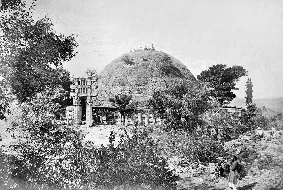 [176] 뉴스 "Asoka’s mud-and-brick stupa got a stone encasing and was enlarged in the Shunga period. The ground balustrades, a berm, stairways, and the harmika were also built during this period, and so were Stupas 2 and 3." https://frontline.th[...] 2024-01-15