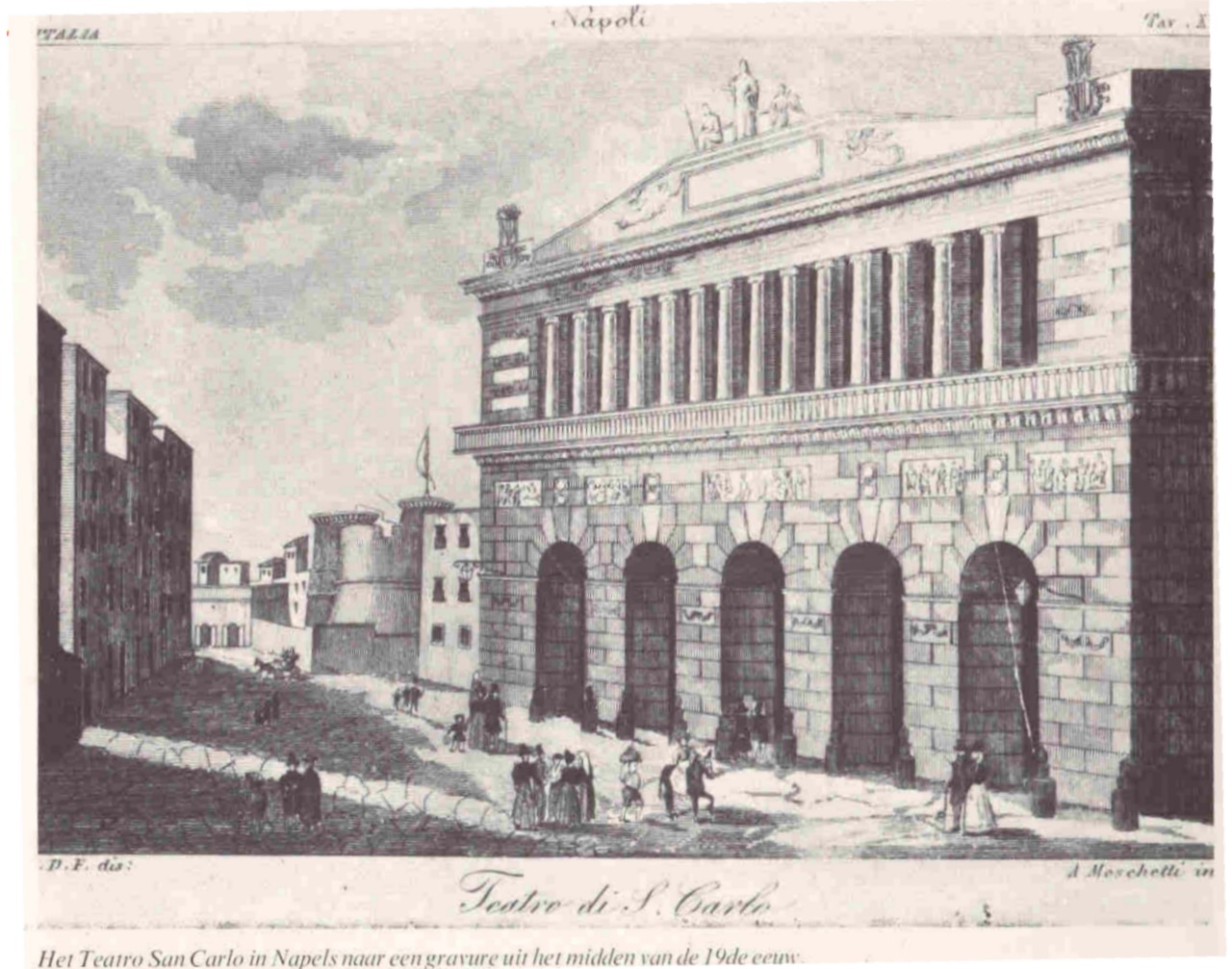 당시 산 카를로 무대에는 마누엘 가르시아와 그의 딸 마리아 말리브란, 클로린다 코라디, 주디타 파스타, 이사벨라 콜브란, 조반니 바티스타 루비니, 도메니코 돈첼리 등 당대 최고의 가수들이 정기적으로 출연했다. 또한, '가슴에서 나오는 C음(흉성 C)'을 개발한 길베르 루이 뒤프레와 그의 라이벌이었던 프랑스 테너 아돌프 누리도 이 무대에 섰다.