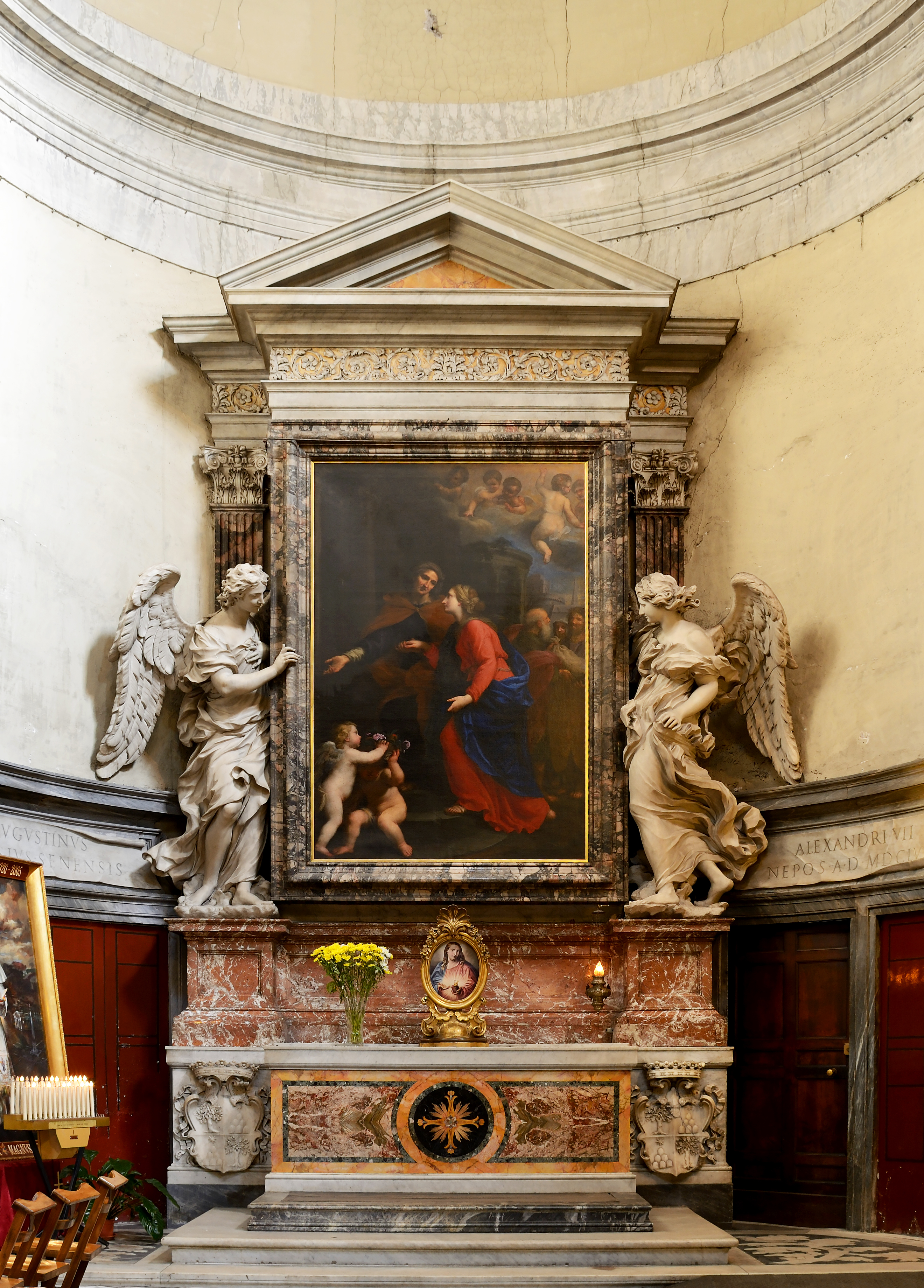 율리우스 2세는 1505년부터 1510년 사이에 도나토 브라만테에게 성가대석을 건설하게 하고, 라파엘로의 베일의 성모와 교황 율리우스 2세의 초상화를 교회에 전시했다.[11][22] 아고스티노 키지는 키지 예배당을 건설했다.