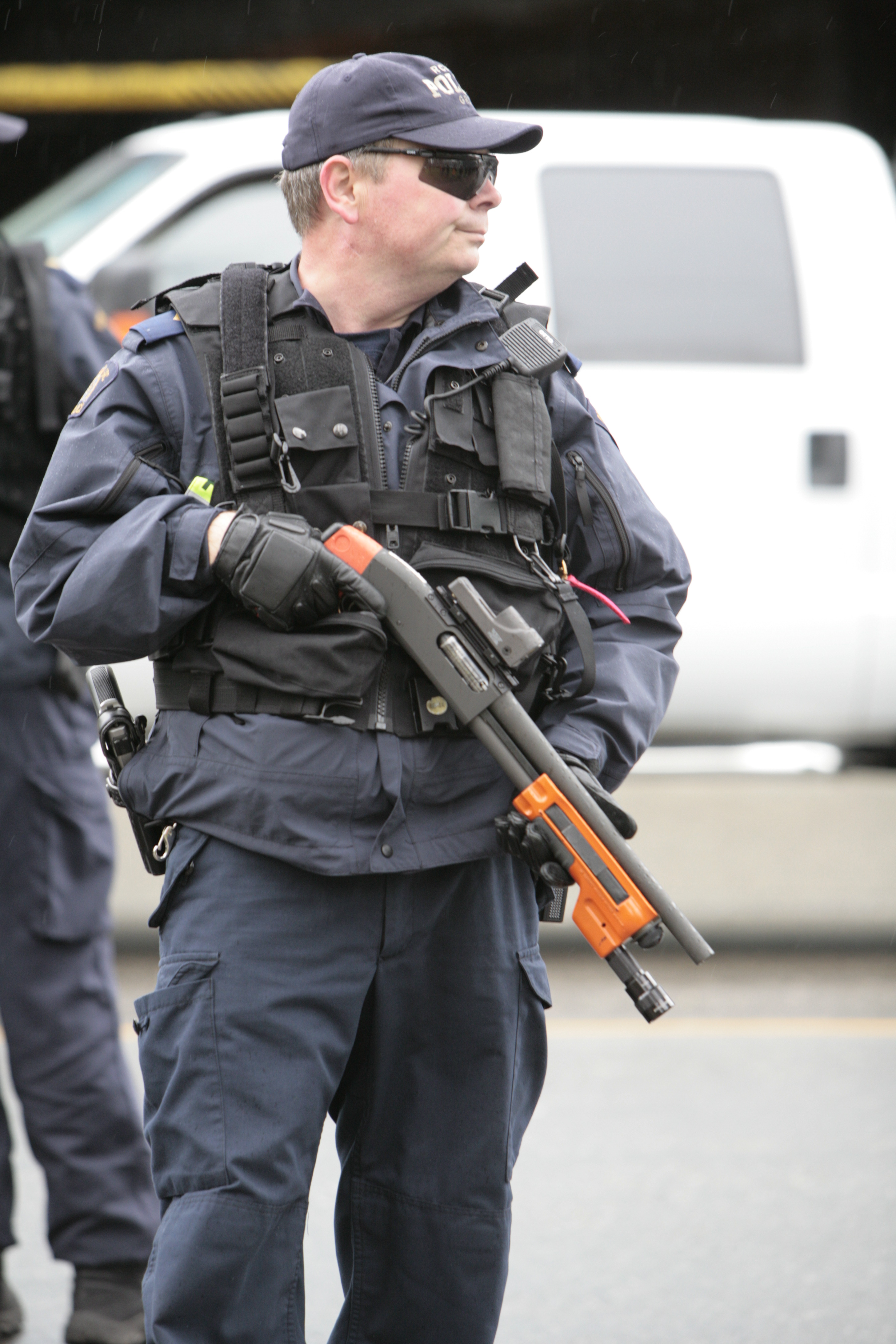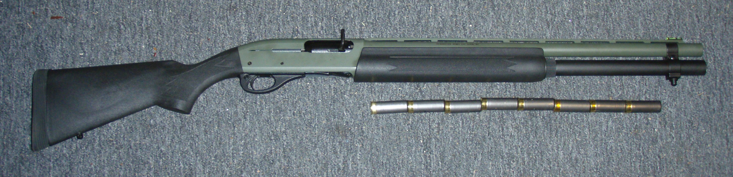 짧은 총열을 가진 펌프액션 산탄총은 가정 방어, 군사, 법 집행에 사용되며, 폭동 진압용 산탄총으로 불린다. 미국 대부분 지역에서 산탄총 최소 총열 길이는 약 45.72cm이며, 이 길이(또는 약 46.99cm 에서 약 50.80cm)가 폭동 진압용 산탄총의 주요 선택이다. 가정 방어 및 법 집행용 산탄총은 보통 12게이지 탄환을 사용하지만, 20게이지나 .410도 사용 가능하다.
