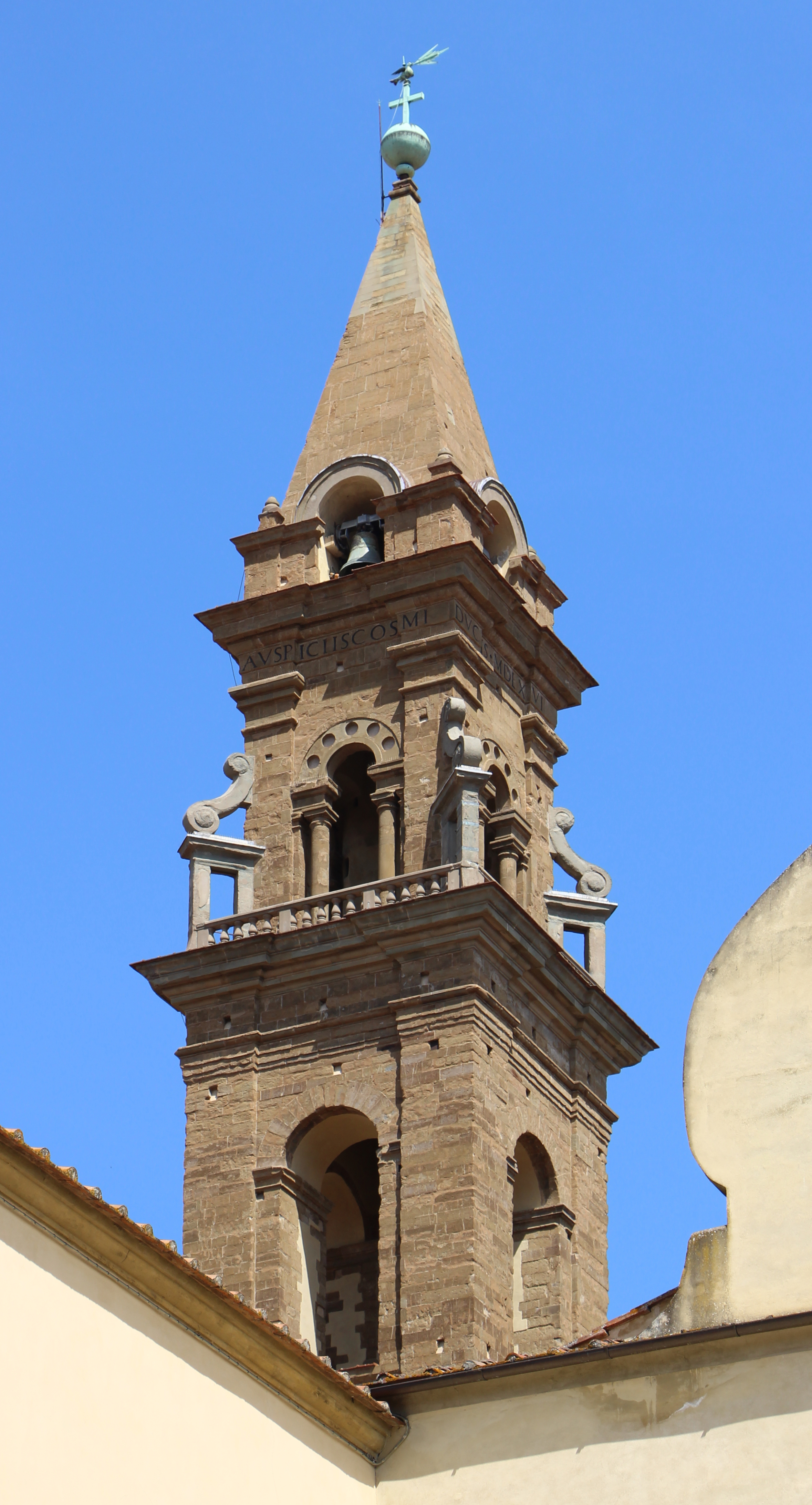 필리포 브루넬레스키가 본래 설계했던 파사드는 실제로 건설되지 못하고 비어 있는 상태로 남았다. 현재 성당의 내부 파사드는 그의 제자 중 한 명인 살비 단드레아가 제작한 것이다. 이 내부 파사드에는 피에트로 페루지노가 디자인한 '오순절' 장면이 묘사된 원래의 스테인드글라스 창문이 여전히 남아 있다.3. 4. 종탑