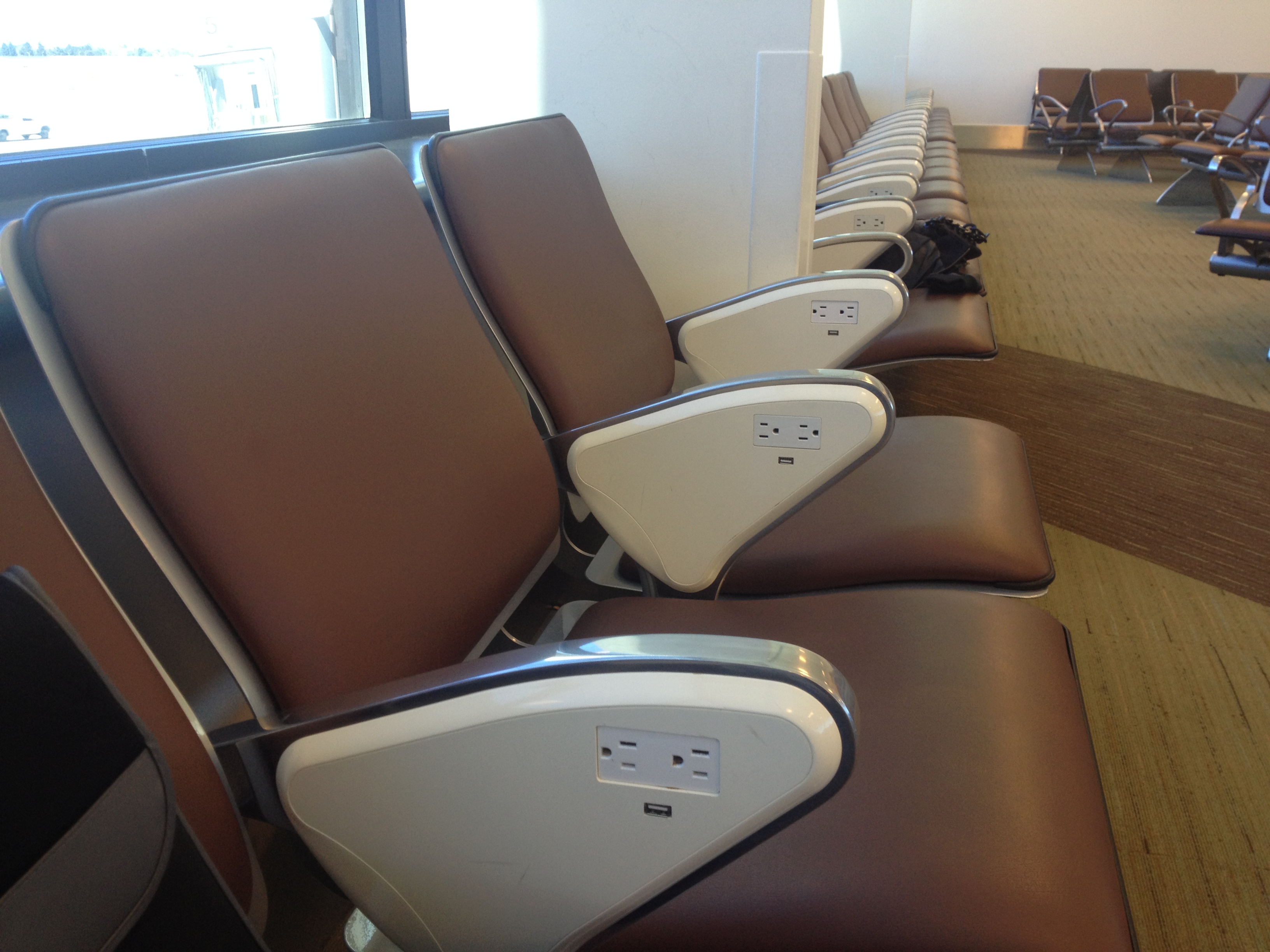 각 팔걸이에 소켓과 USB 포트가 있는 좌석 공간